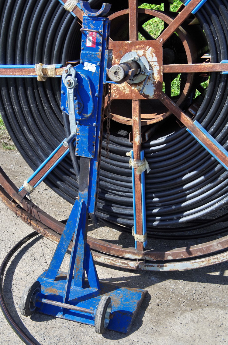 avec les tourets et les dérouleurs montés sur vérin avec cric à crémaillèrede Type TZ pour la fibre optique