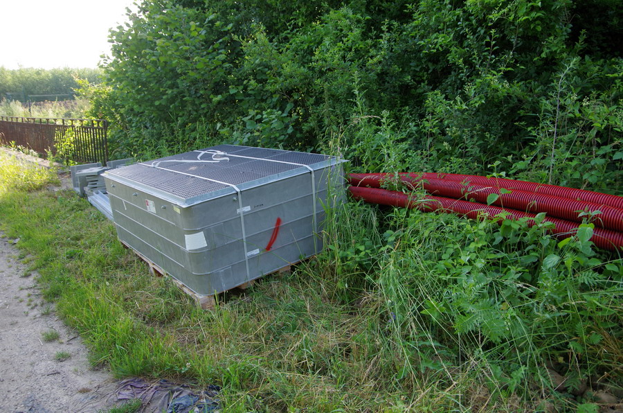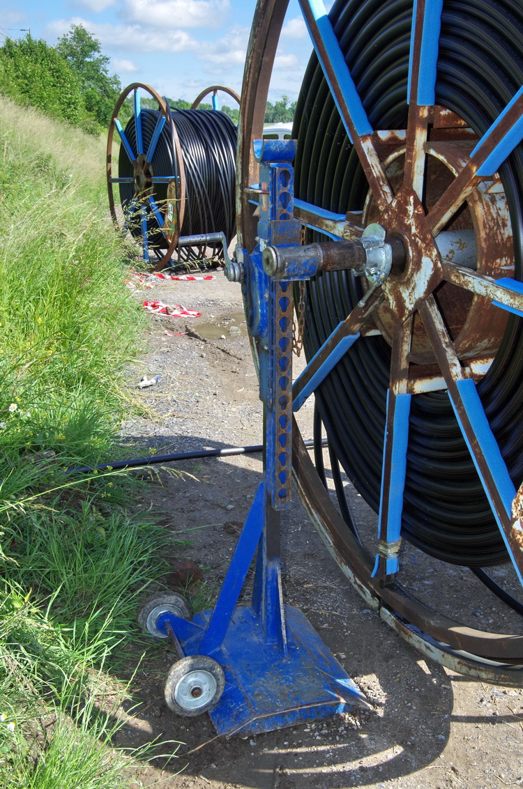 les tourets et les dérouleurs de fibre optique au point C4 à Jussy le 11-06-2019