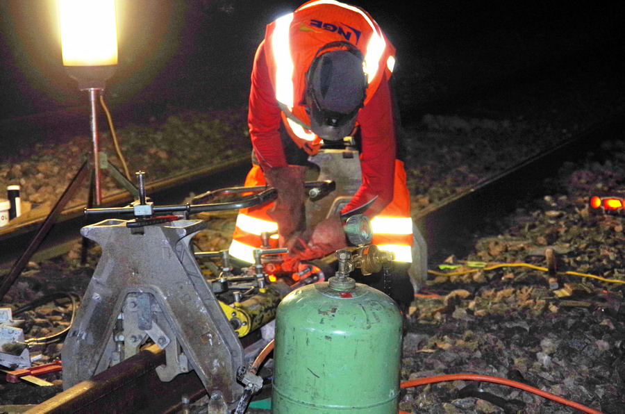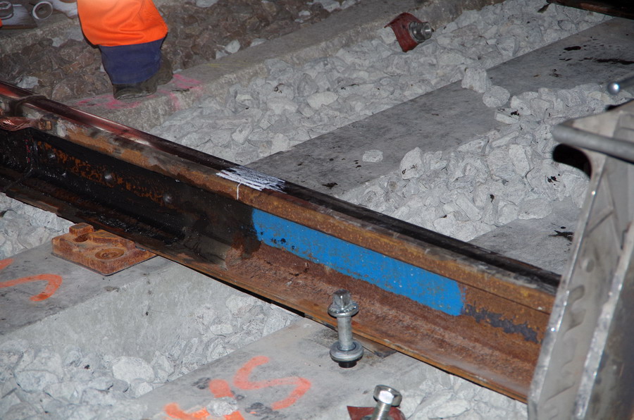 fin de la soudure aluminothermique au PN 58 à Chauny dans la nuit du 23 au 24-04-2019
