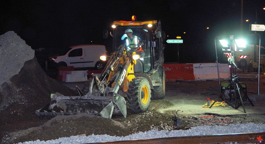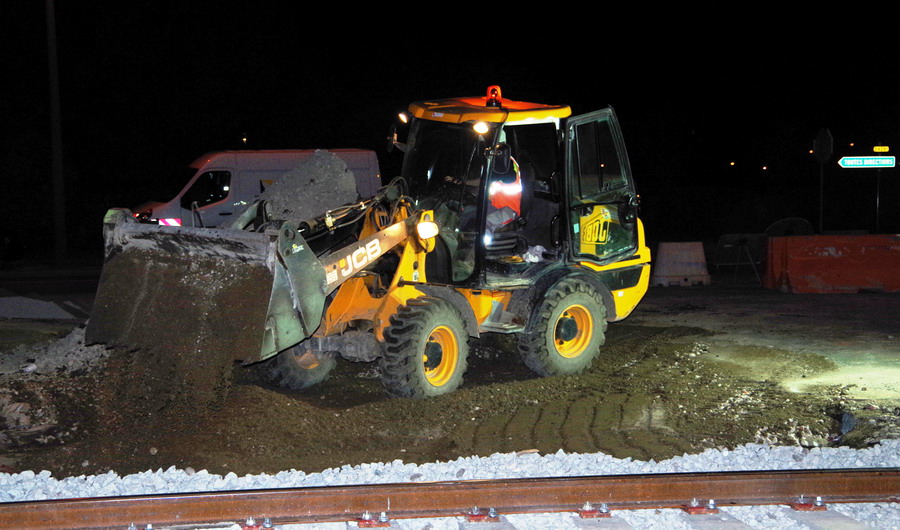 un chargeur JCB pour les travaux au PN 58 à Chauny nuit du 23 au 24-04-2019