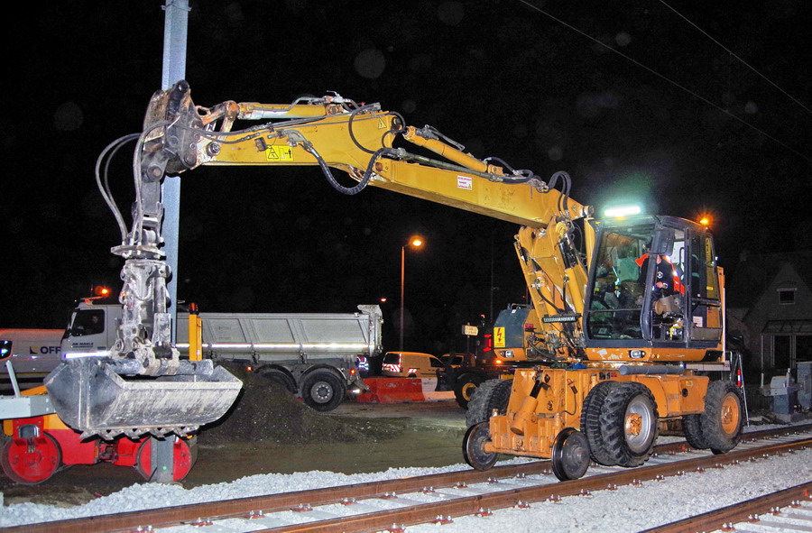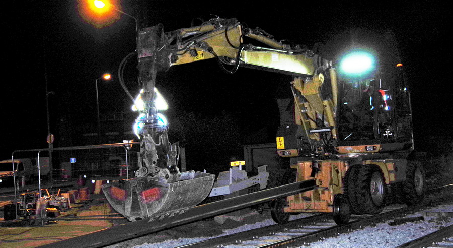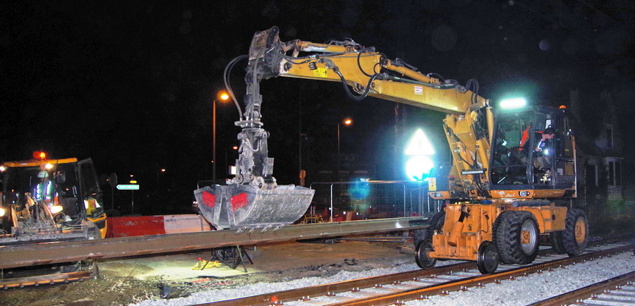 un charcheur JCB pour les travaux au PN 58 à Chauny nuit du 23 au 24-04-2019