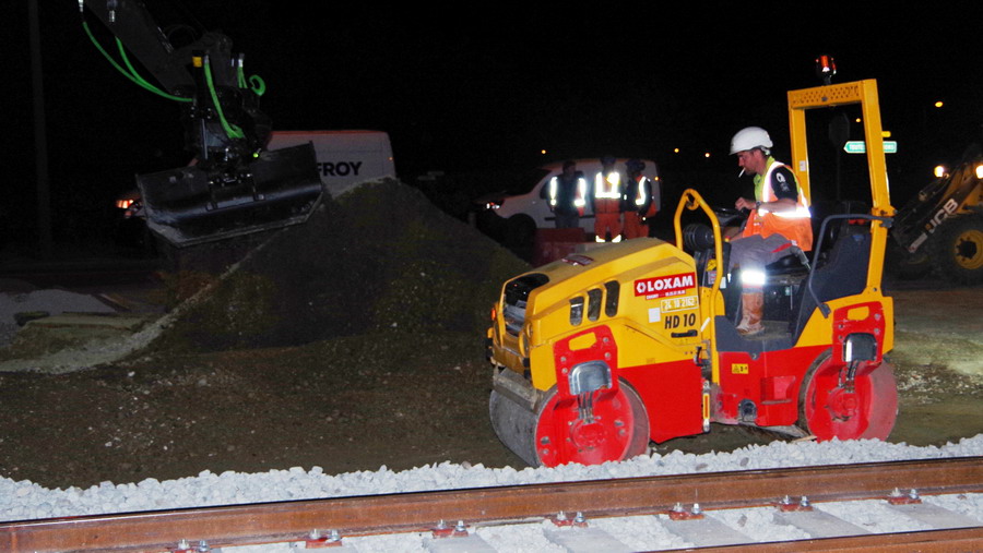 Rouleau Tandem LOXAM HD10 de compactage pour les travaux au PN 58 à Chauny nuit du 23 au 24-04-2019