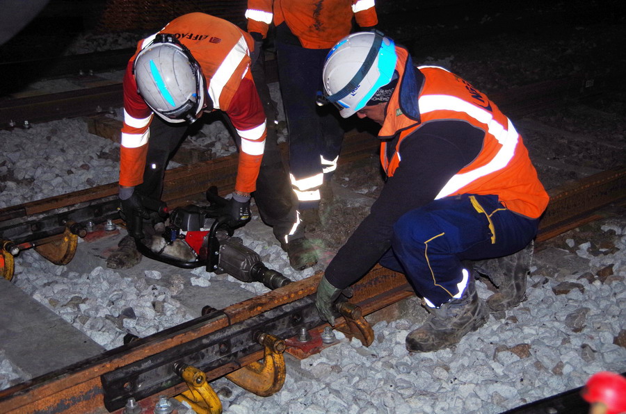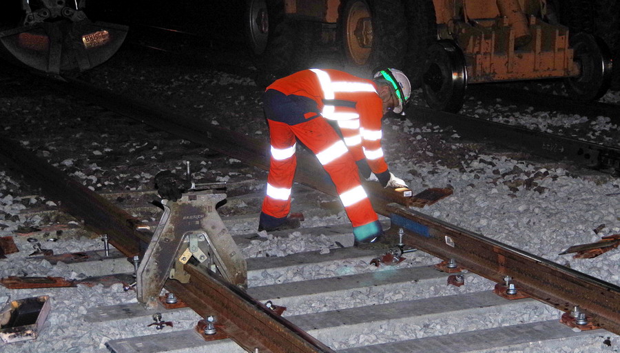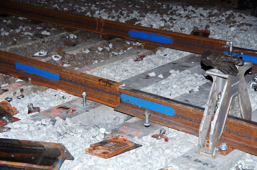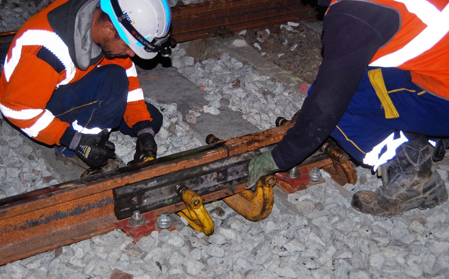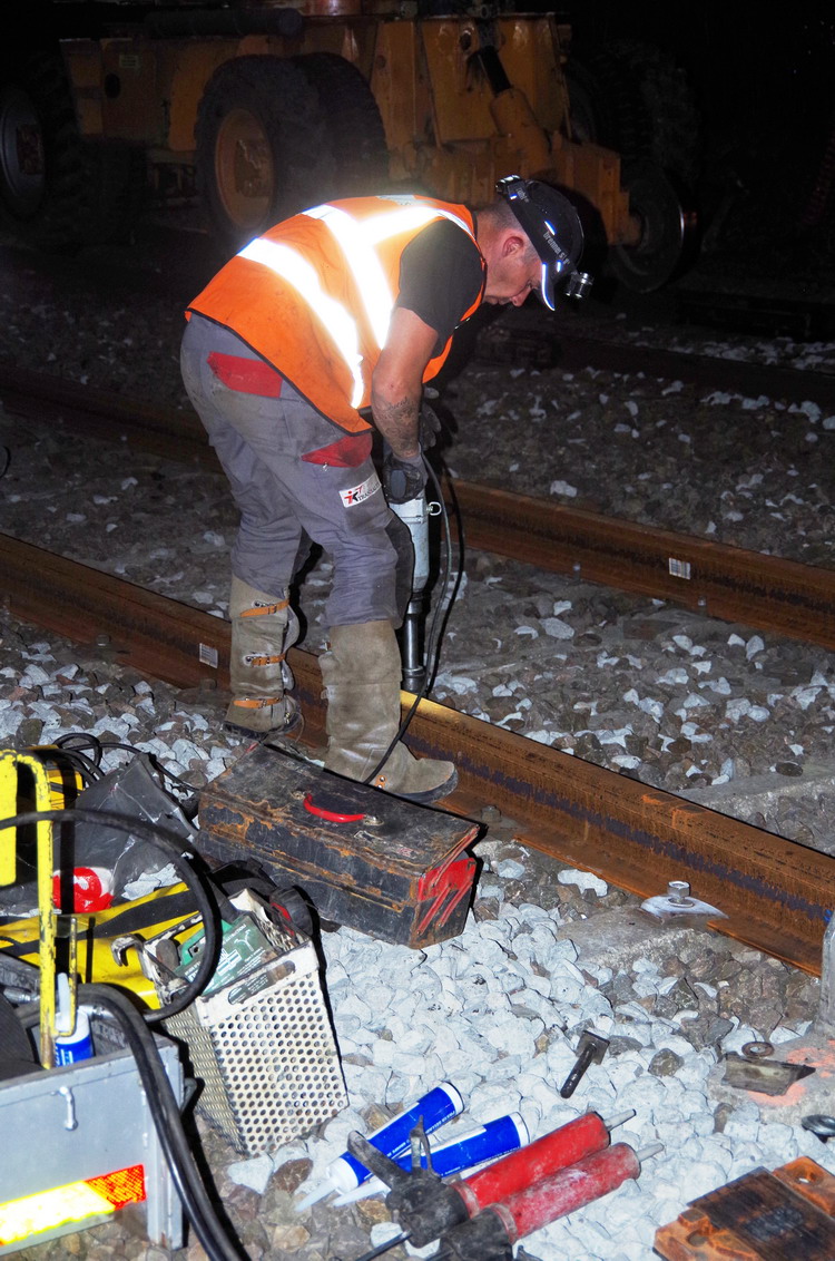 préparation pour la mise en place par la suite des éclisses à 6 trous au PN 58 à Chauny nuit du 23 au 24-04-2019