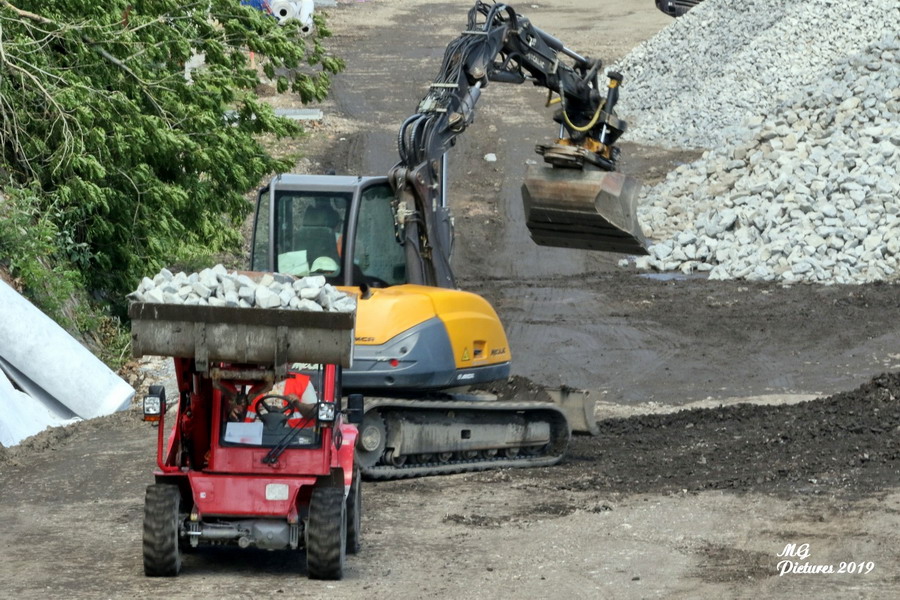 suite des travaux avec une Pelle Mecalac le long du coteau pour une nouvelle voie d'accès le 12-06-2019