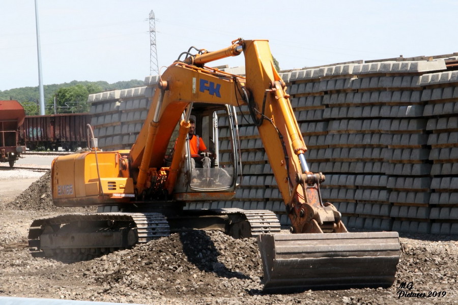 déblaiement sur la base de travaux du Puy-Imbert le 18-06-2019 avec une Pelle route à chenilles Fiat-Hitachi FK-EC165