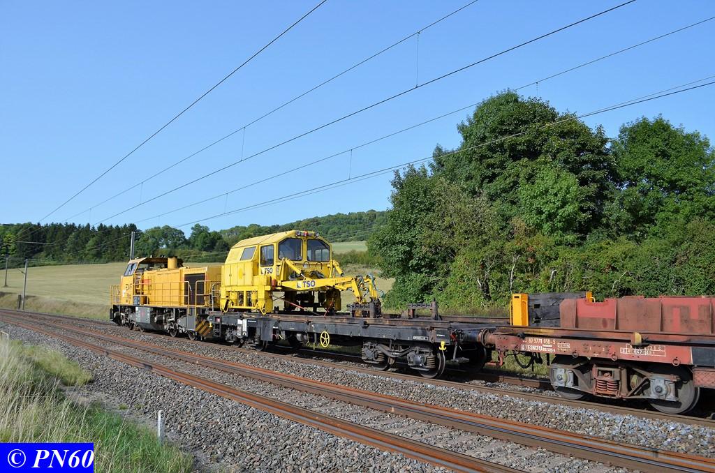 Un autre train de travaux photographié le 29 août 2017 sur la ligne 15 à Brainville sur Meuse. Celui-ci est tracté par une G.1206 DVF (Dijonnaise de Voies Ferrées).
