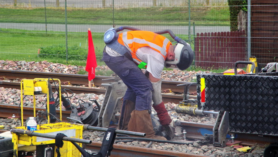 fin de séance de soudure aluminothermique sur les LRS en gare de Marcelcave (80) PK 21,100 le 15-06-2018