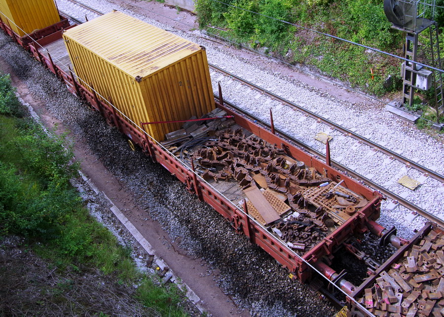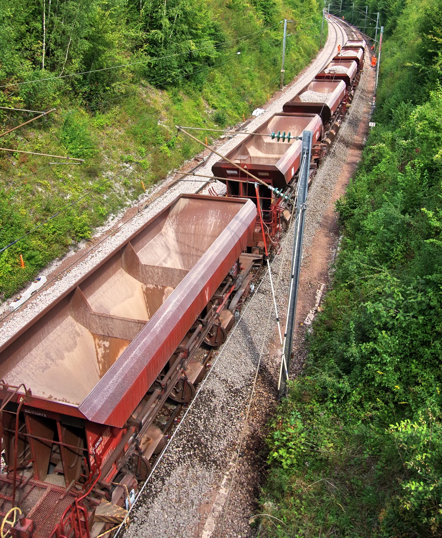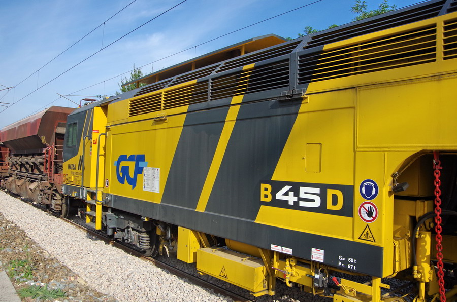 nous sommes maintenant au PK 33 avec le passage de la Dégarnisseuse C75 GCF Roma et la rame de Trémies pour le ballast