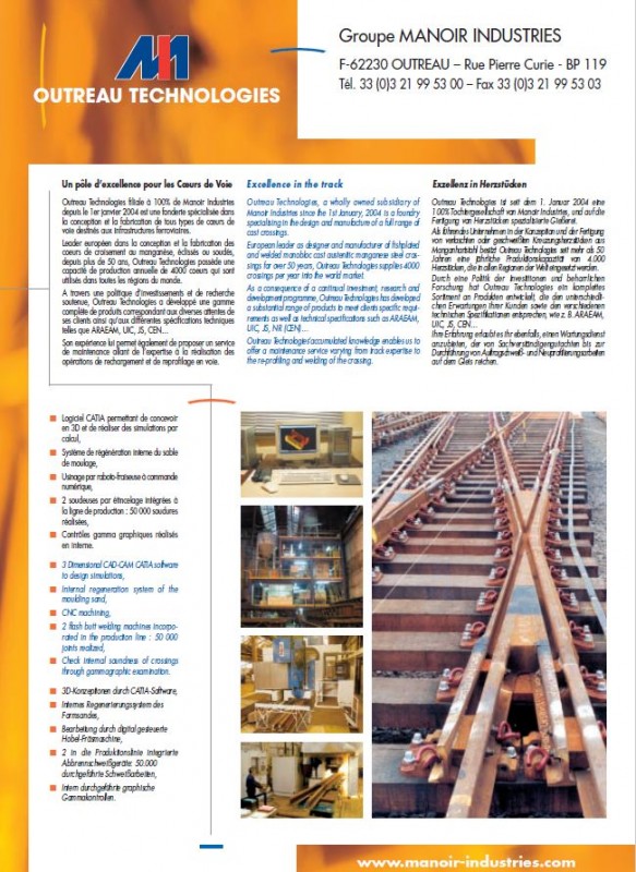 • Ecartement de voie 1 435 mm (autres sur demande)
