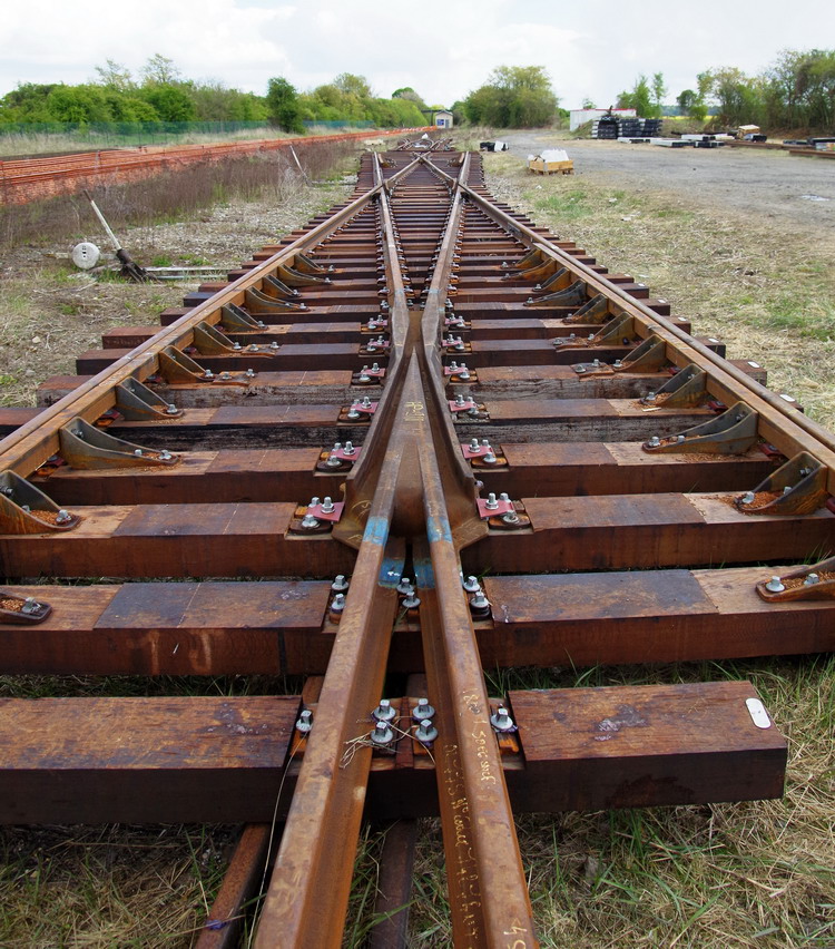 - fixation par des tirefonds ou boulons avec des rondelles, des traverses en béton sur le rail avec système crapaud