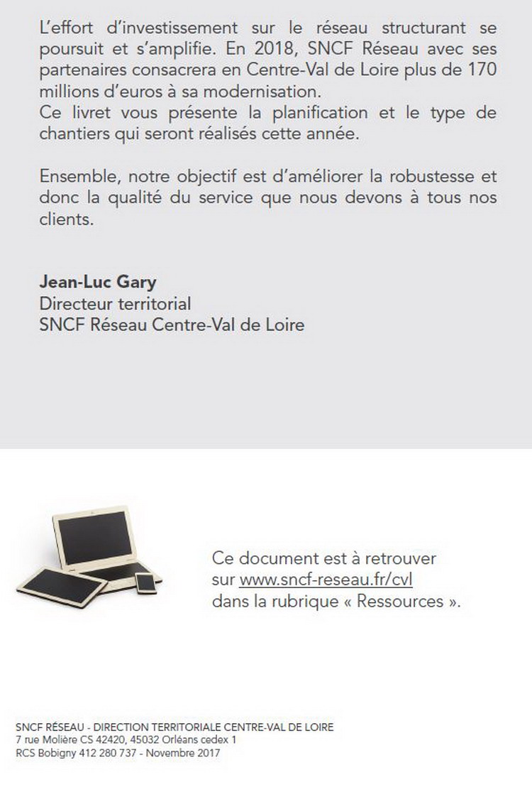 PDF de SNCF RESEAU avec l'ensemble des cartes des travaux Centre Val-de-Loire