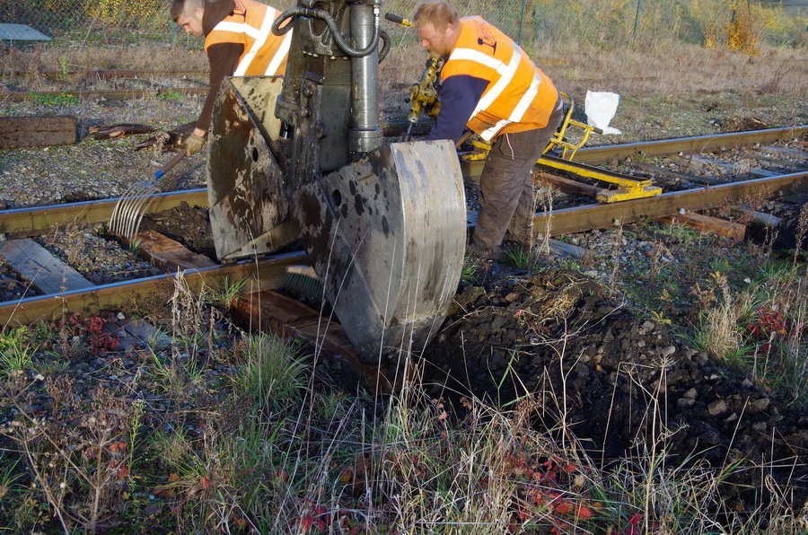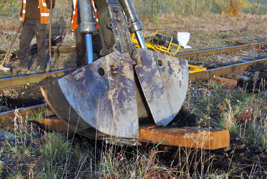 Travaux réalisé par l'entreprise BRIFER de ROZAY EN BRIE (77) avec une Pelle Rail route