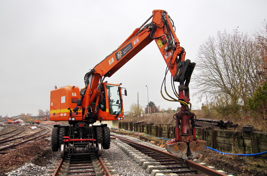 Unac 22 TRR UP2 - EY200116 pour la mise en place des nouvelles traverses bibloc neuves sur le site en travaux de Longueau le 26-11-2018
