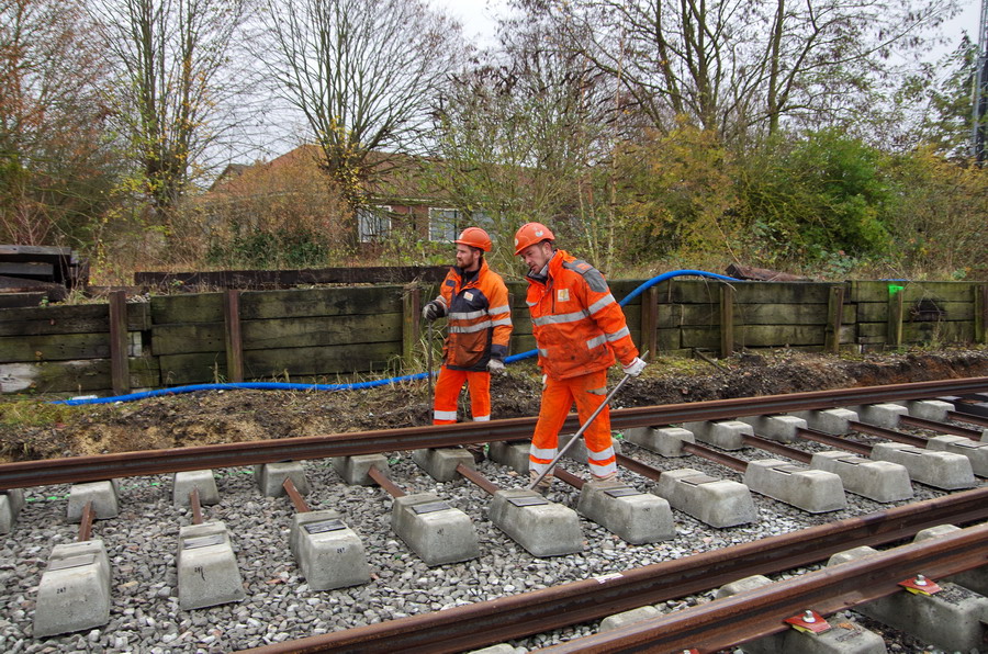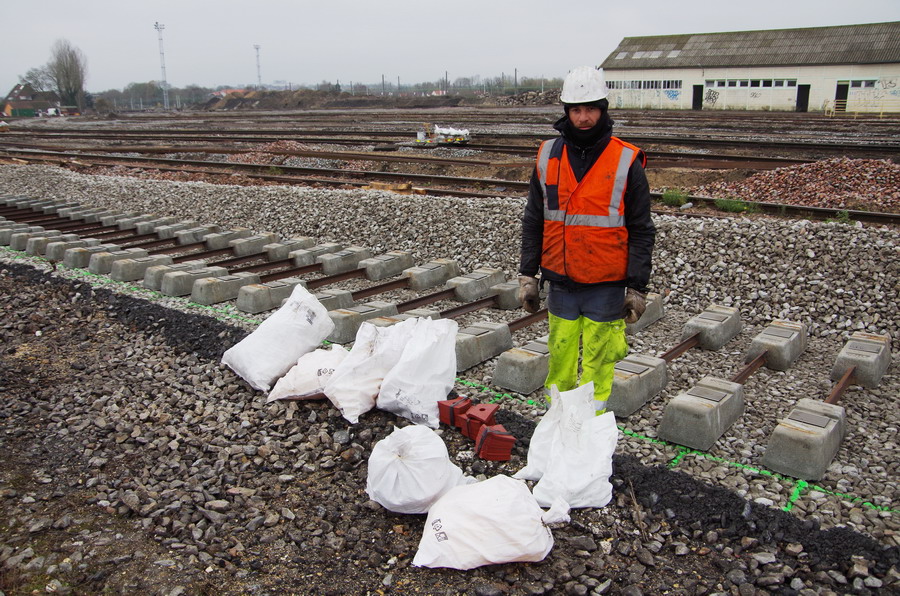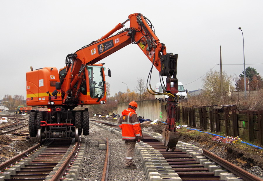 mise en place des nouvelles traverses bibloc neuves sur le site en travaux de Longueau le 26-11-2018