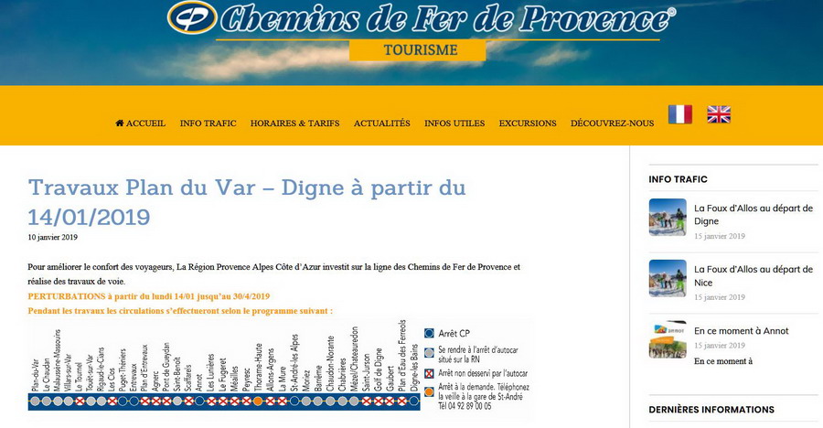 Alpes-Côte d’Azur : Modernisation d’environ 25 Km de la ligne ferroviaire Chemins de Fer de Provence dans la vallée du Var en France