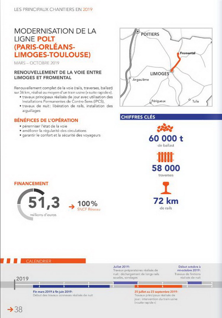 travaux ferroviaire RVB de la ligne du POLT (Paris-Orléans-Limoges-Toulouse) entre 2019 et 2024