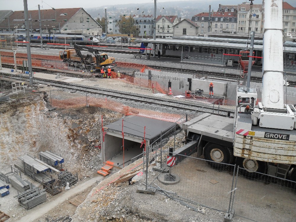 Etant de passage sur Besançon mardi 22 novembre 2011, je me suis arrêté à la Viotte est tel ne fût pas ma surprise que de voir un énorme trou coupant plusieurs voies en deux ! ! !