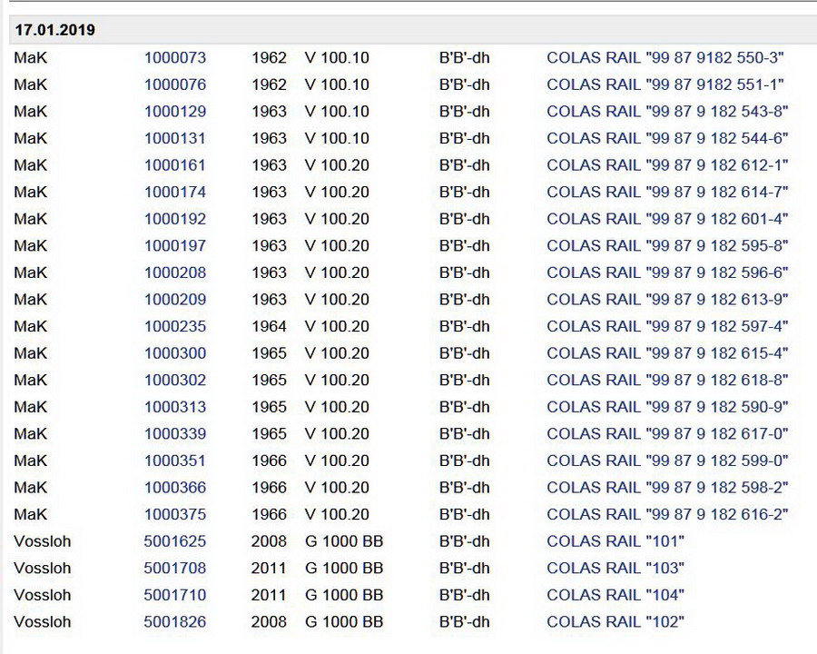 Voici la liste complète des 33 machines V211/212 pour BRLL - Beacon Rail Leasing Luxembourg au 12-2018