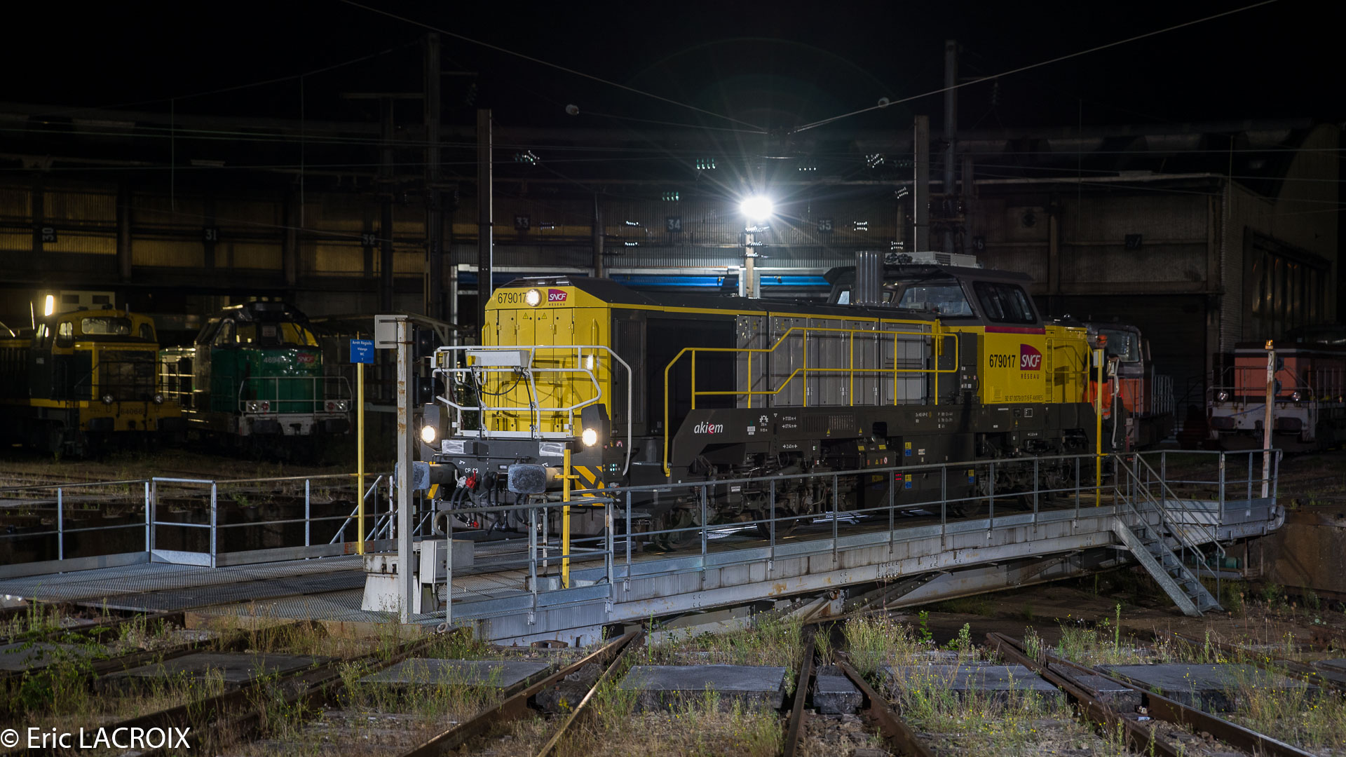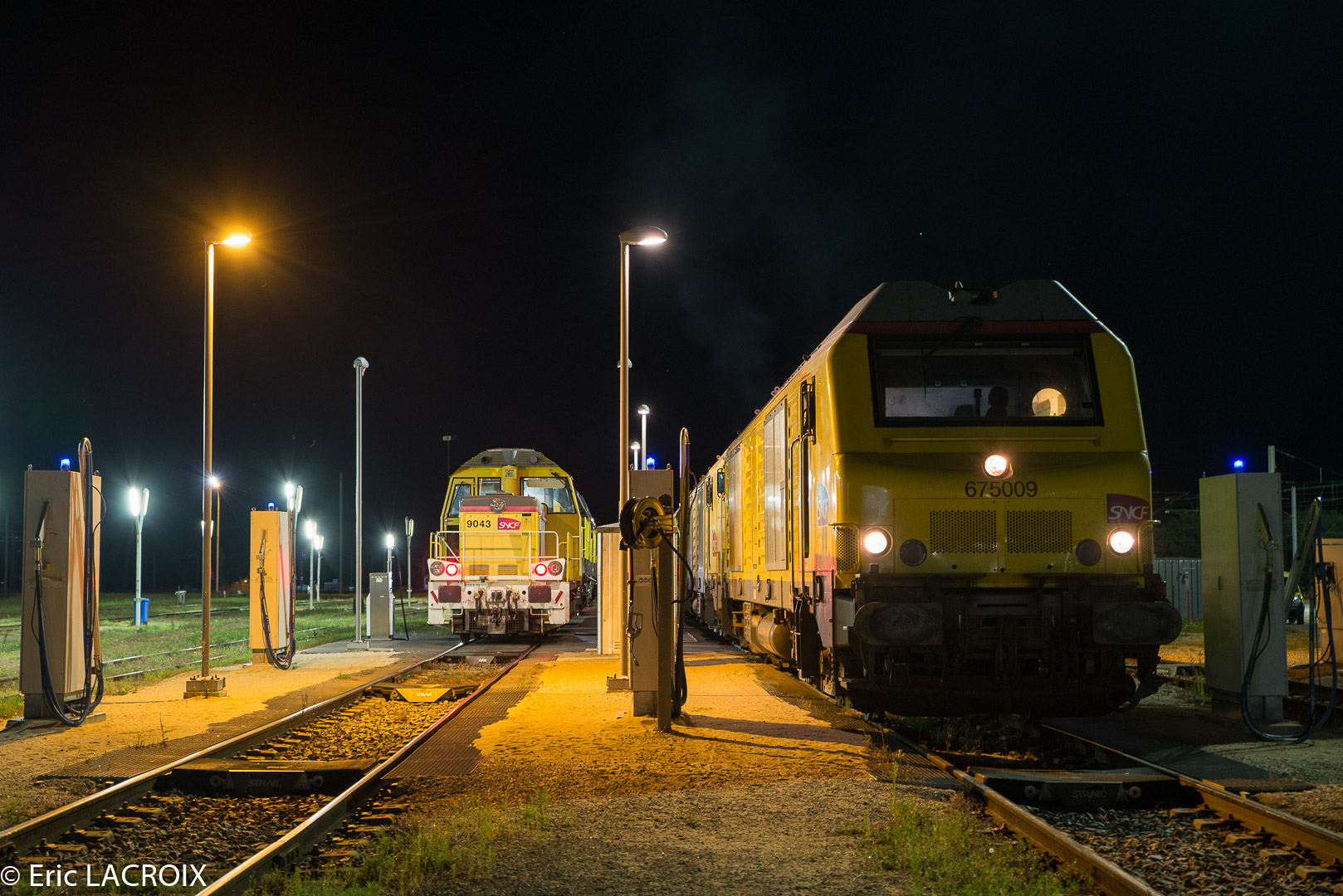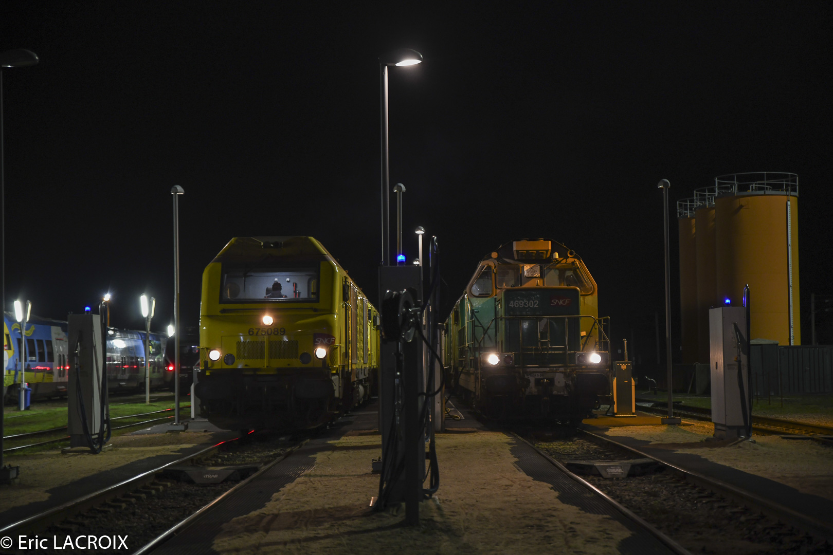 Rentrée nocturne des engins de l'INFRA à Chalindrey en février 2023.