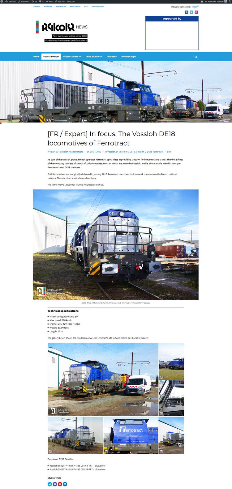 Retrouver mes photoss des DE 18 de Ferrotract sur le site de RAILCOLRNEWS.COM