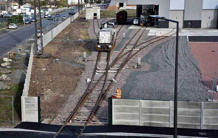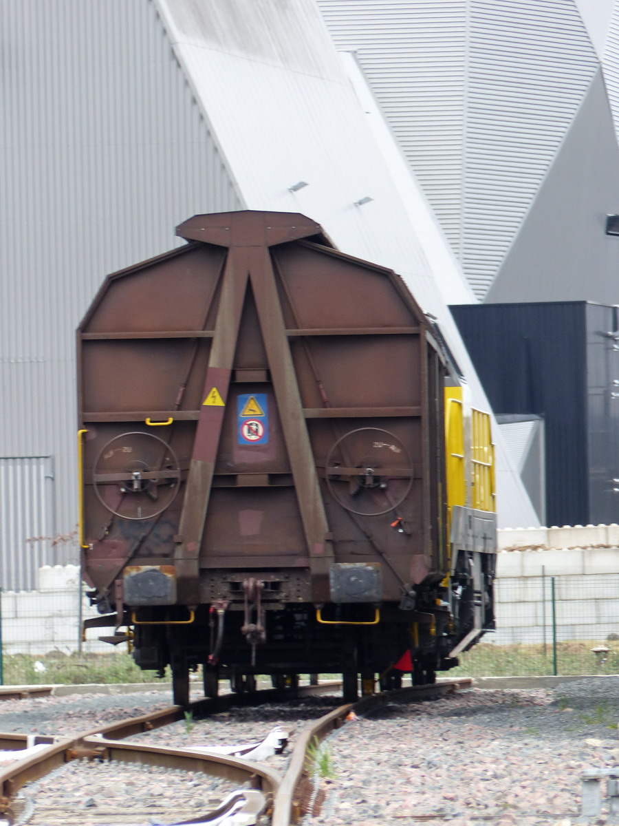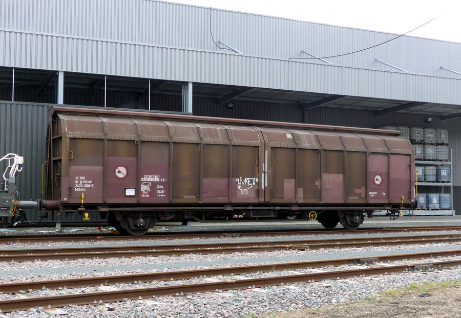 - 21 81 2470 008-7 Hbbins RIV A-RCW le wagon d'accompagnement à essieux et parois coulissantes depuis la sortie de l'usine Vossloh à Kiel
