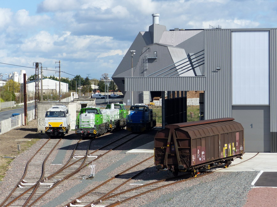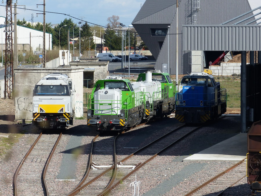 vue d'ensemble de l'atelier IMATEQ à SPDC avec les 2 DE 18 et la G 1206 BB 5001545 le 17 mars 2019