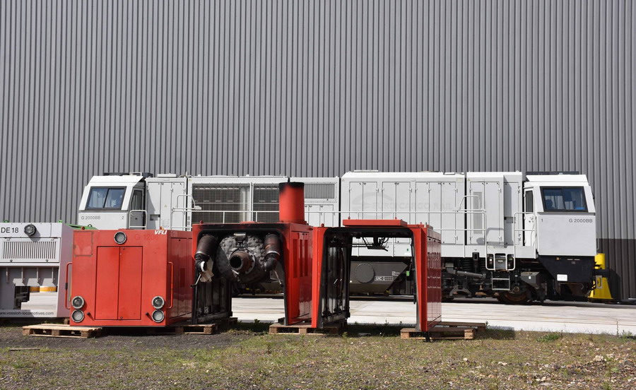 et à droite de l'atelier des capots moteur de 2 G 1206 et une DE 18 Vossloh usine