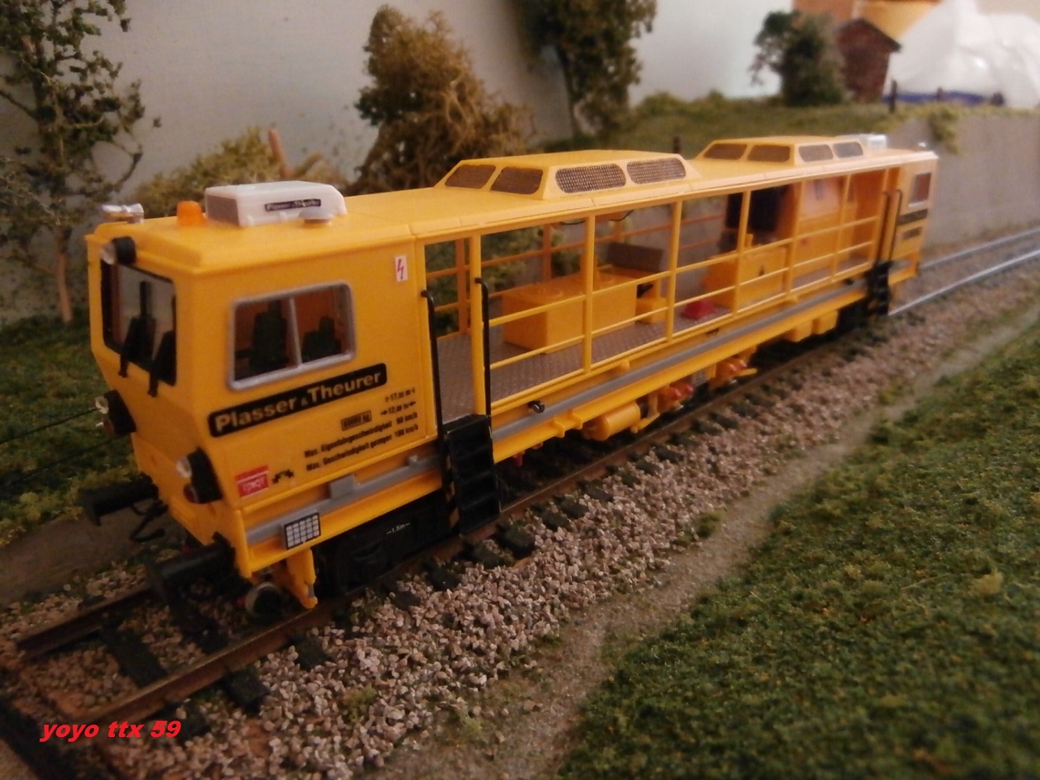 Nous voici de nouveau a courir dehors , et la :o un train de ballastières quitte lui aussi la petite base travaux :