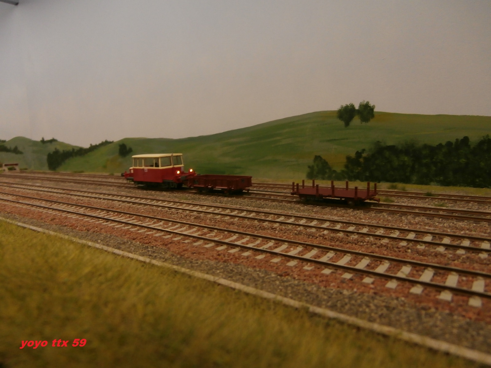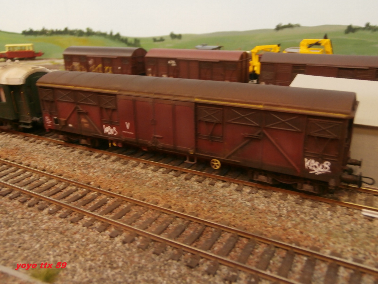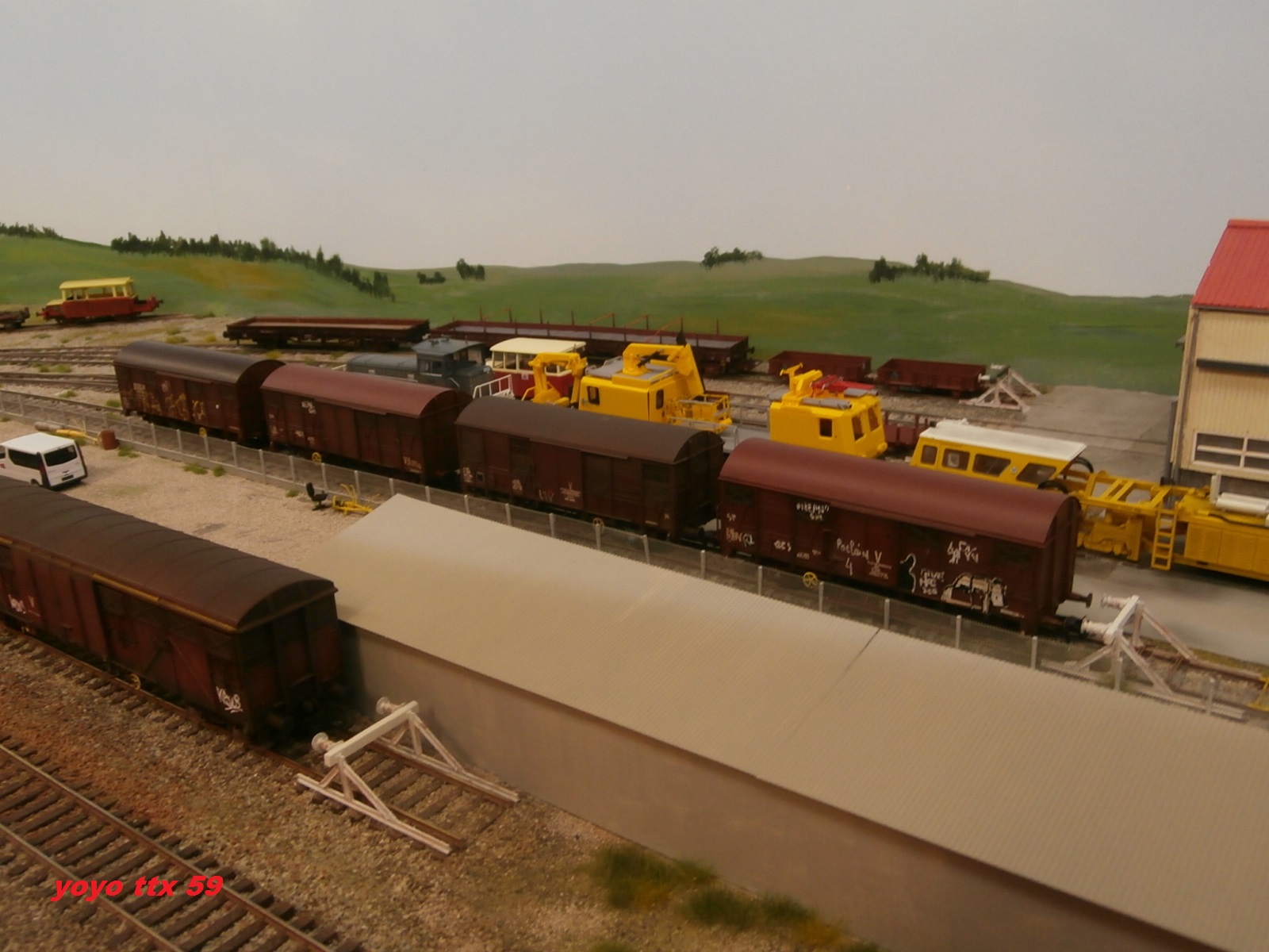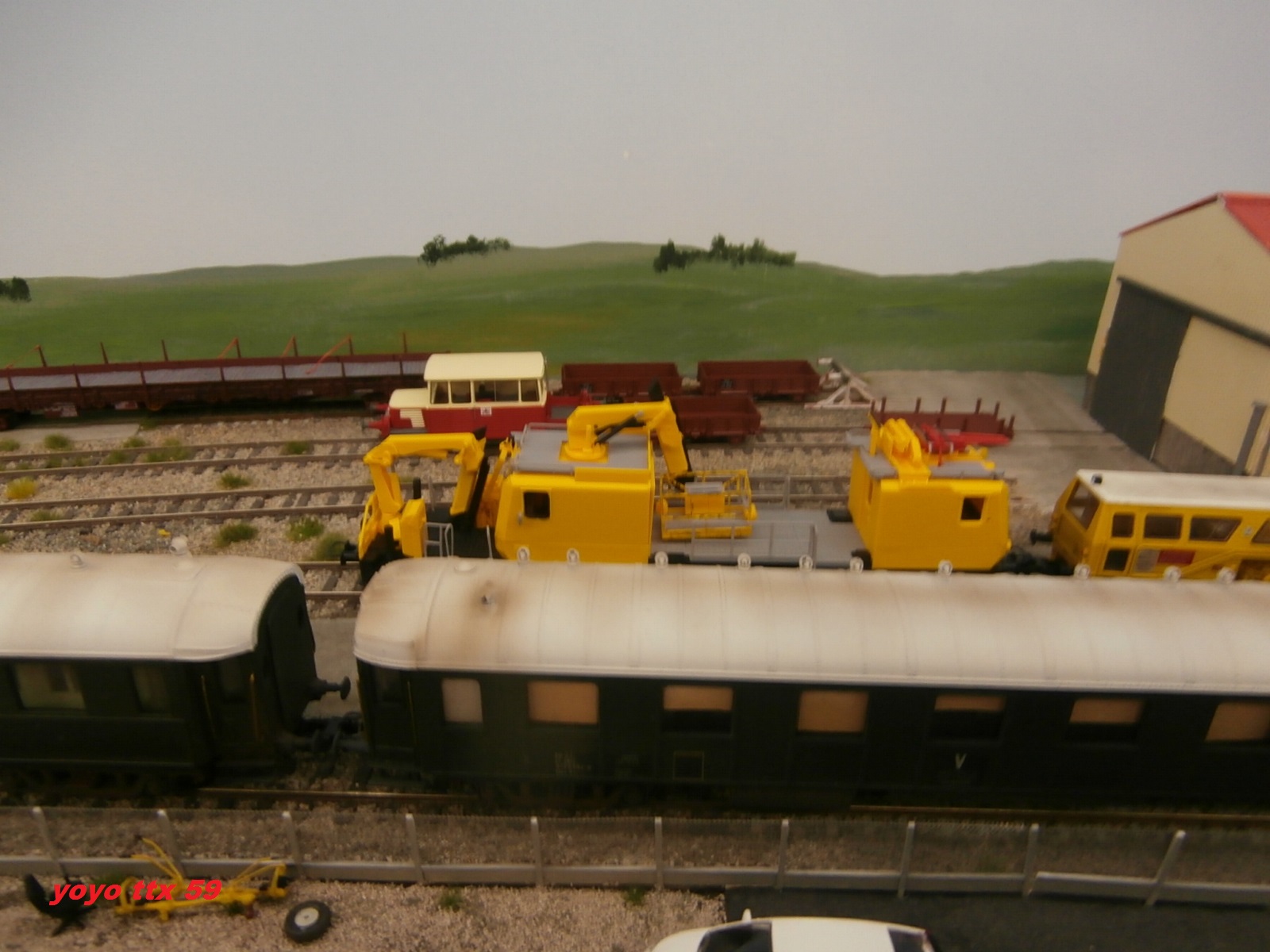 Je commence avec ce train parc composer de couverts a essieux , un couvert a bogies et de deux voitures de cantonnement .