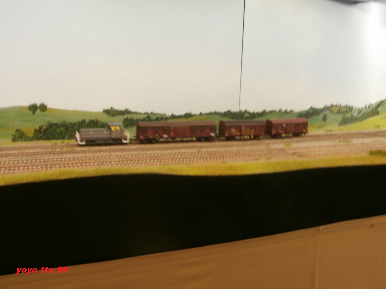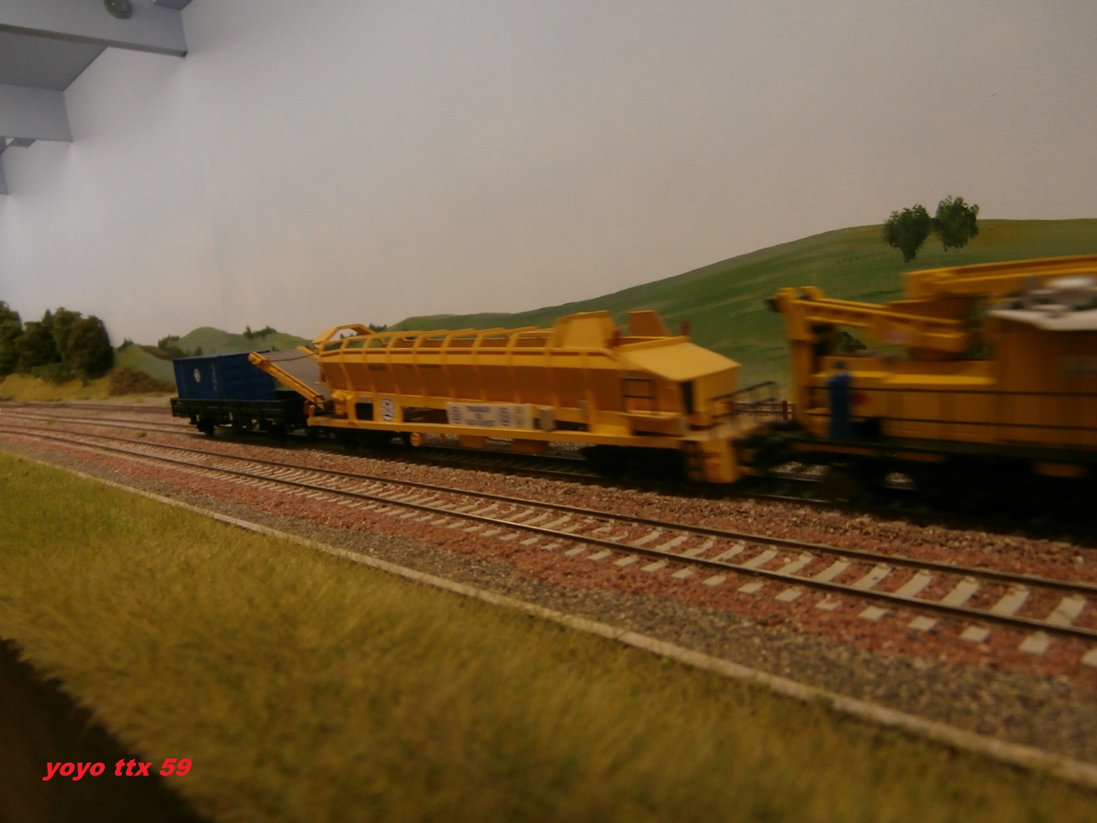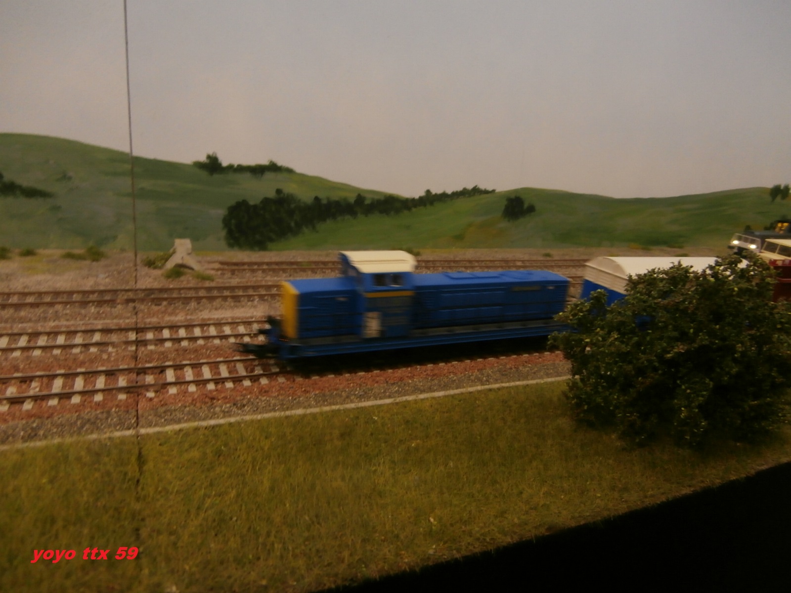 Et maintenant , toujours le même Y 8000 qui manœuvre trois couverts du train parc :