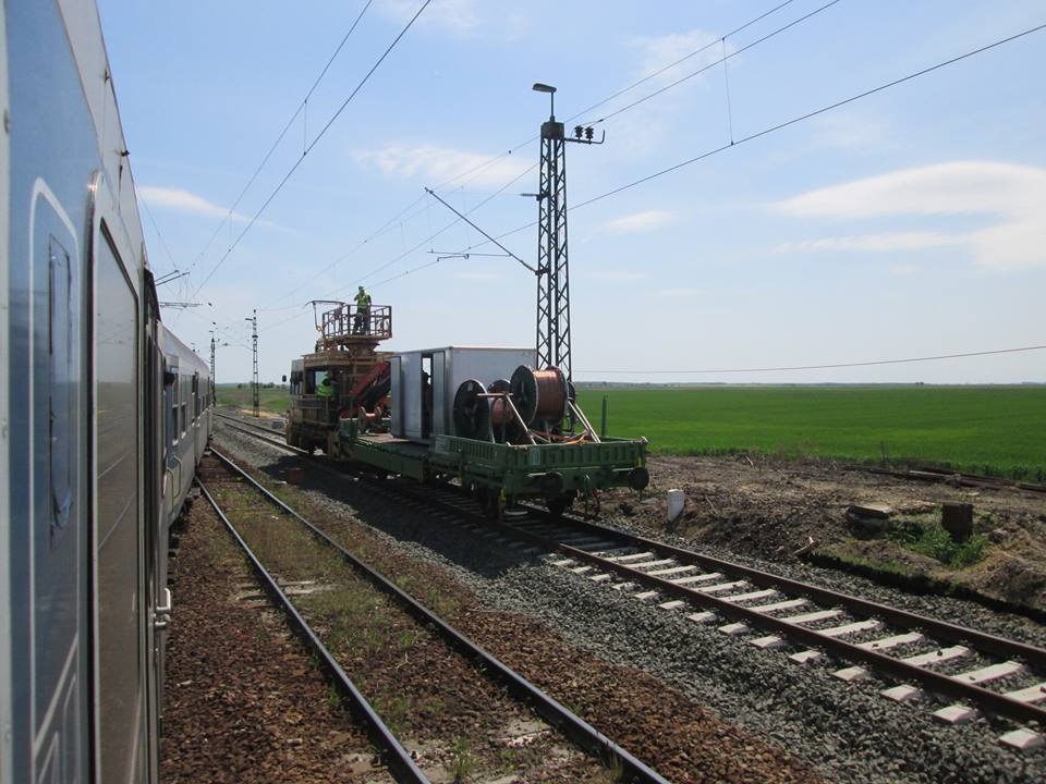 Photos d'un chantier caténaire pris a la sauvette du train reliant Szolnok a Budapest en Hongrie le 16 mai 2017