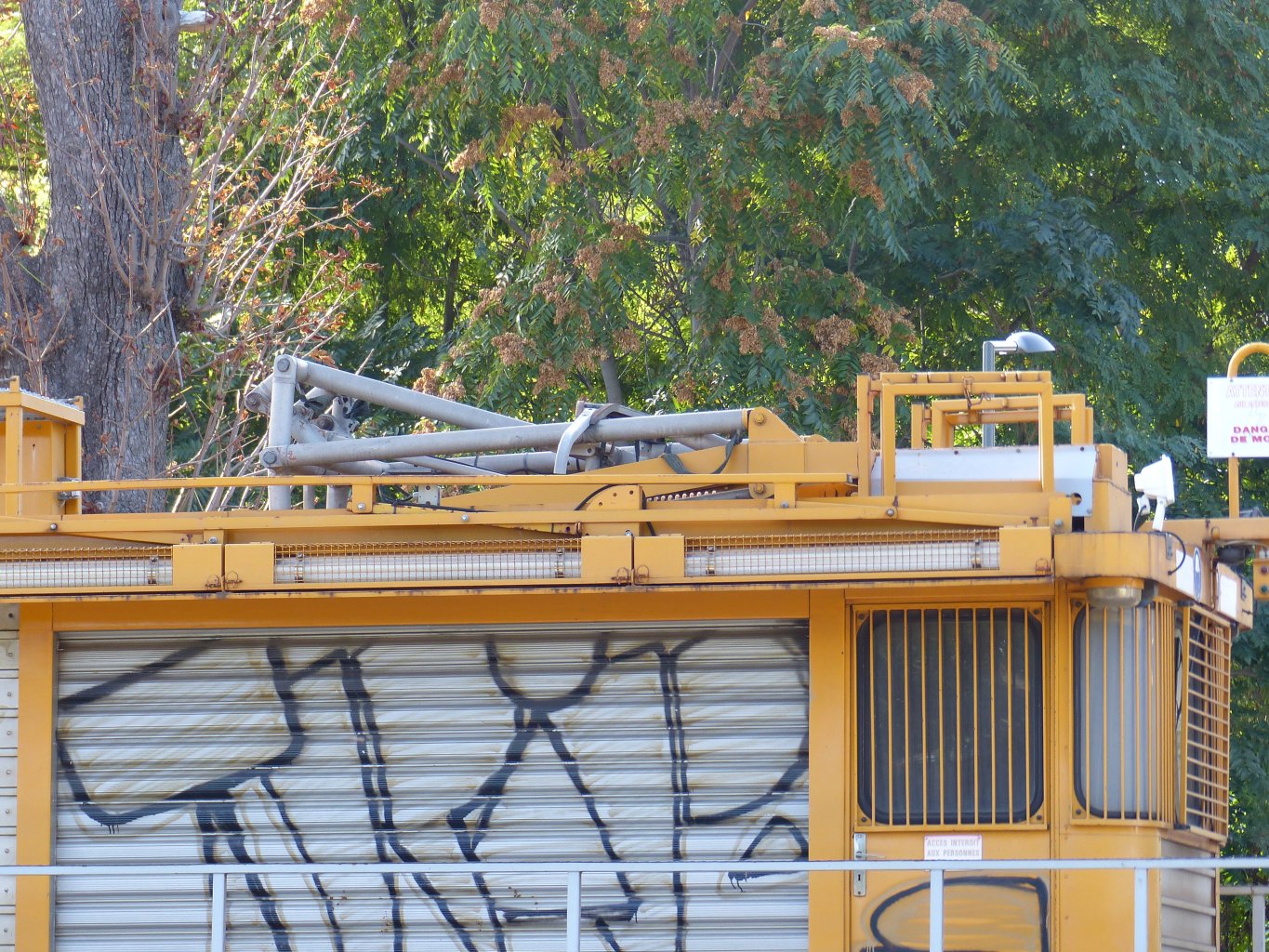Le bras de la nacelle élévatrise et l'immatriculation ( comme mon copain n'était pas de service je n'ai pas osé relever la protection pour pouvoir prendre la photo ;) )