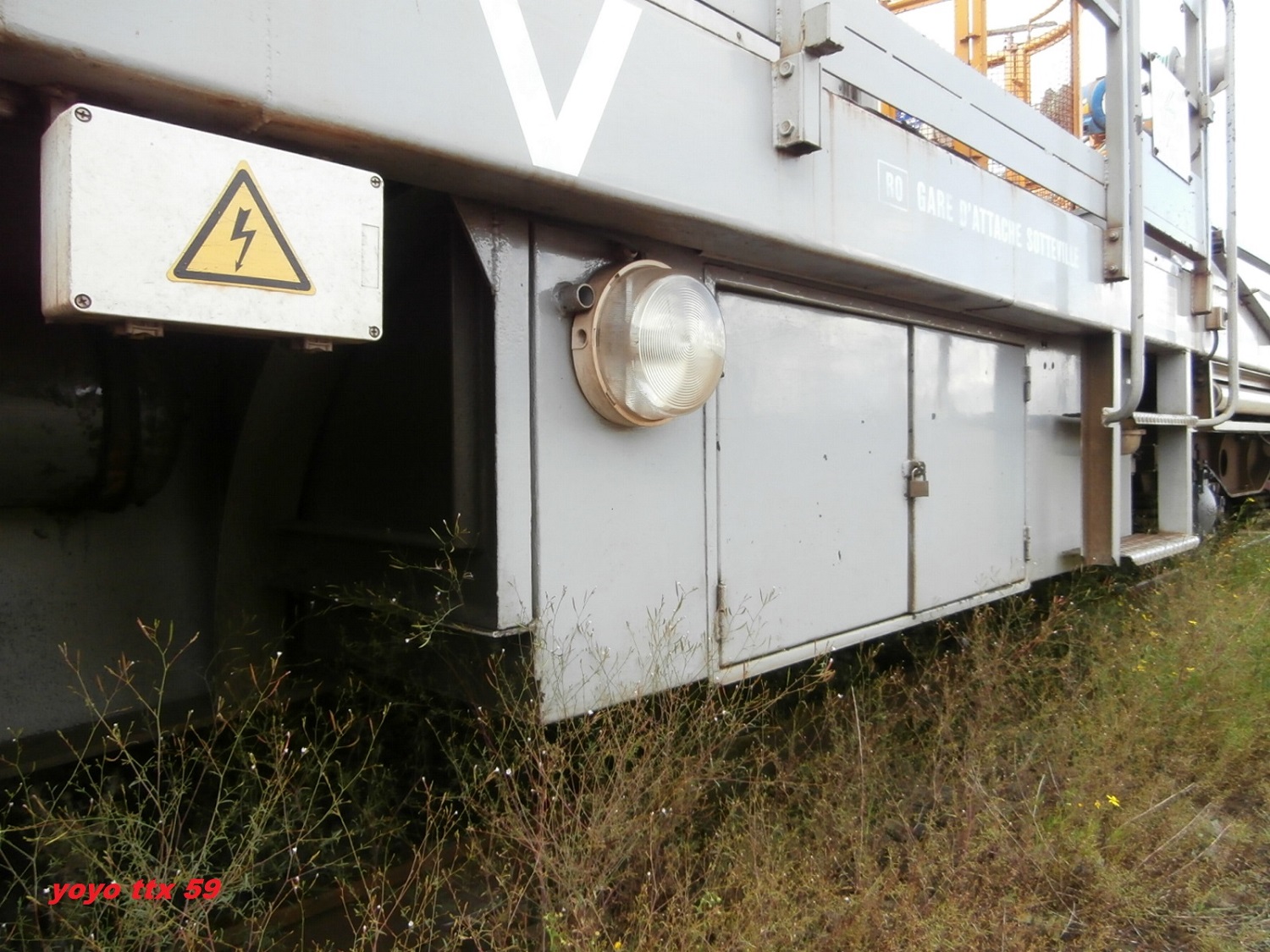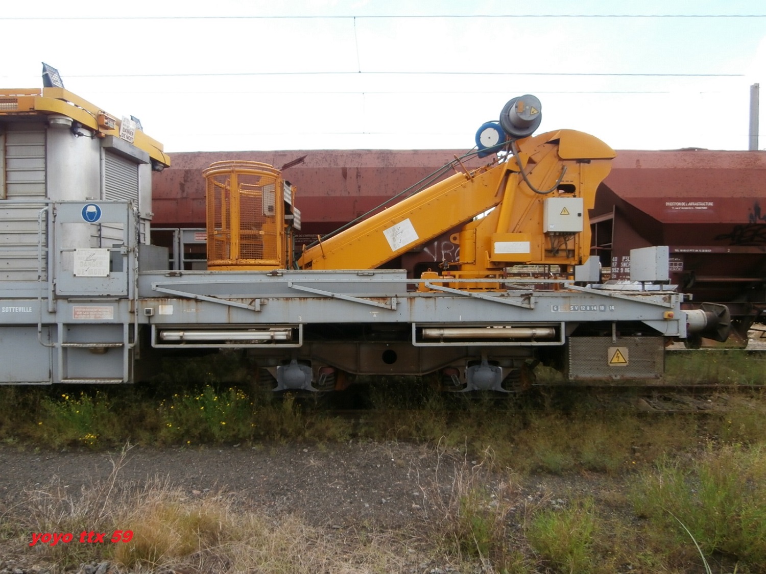 On voit qu'il fait partie des WIT modifiés et qu'il bénéficie désormais de batteries nécessaire à son autonomie de traction sur chantier (elles se trouvent sous les traverses avant et arrière). Il semble cependant que ce dispositif ne soit pas totalement au point ...