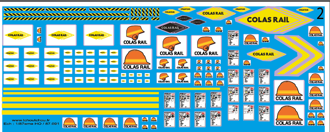 voila en exclut ou presque la nouvelle planche 87.091. qui reprend les 3 logo colas rail ( NB : mr de colas rail arrêté de changer de logo svp ), la planche 87.115 ( logo nouveau casque colas rail ) une fois épuisé ne sera plus fabriqué.