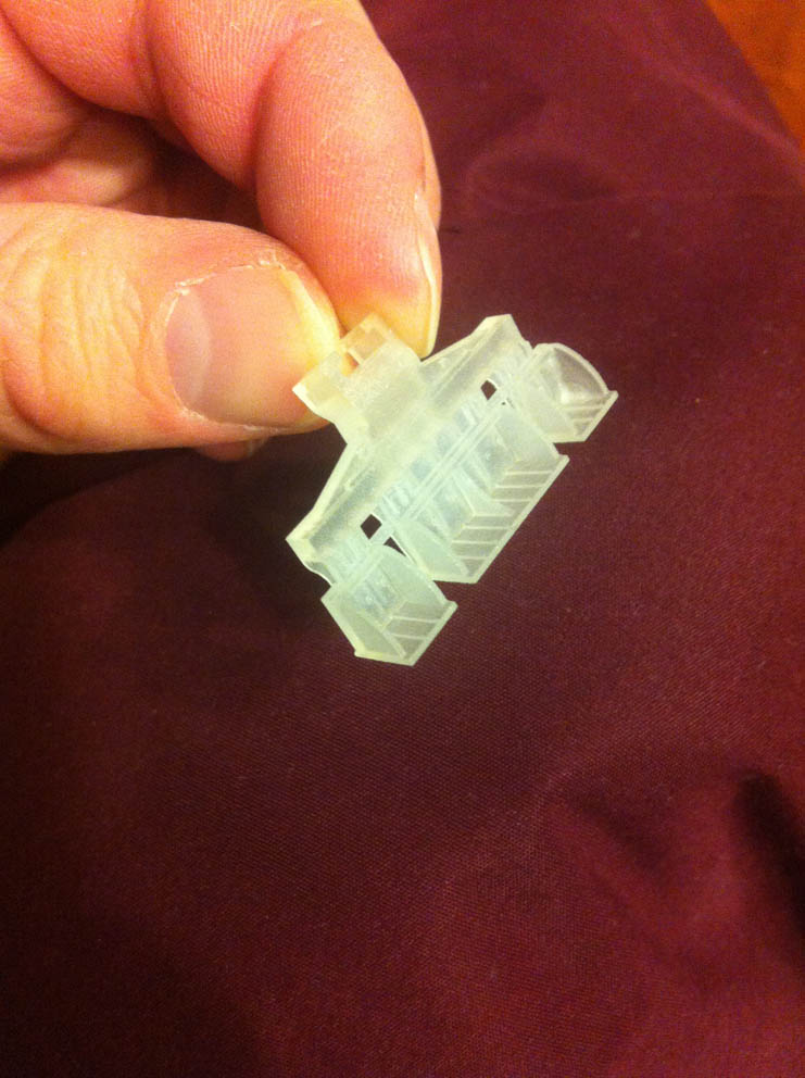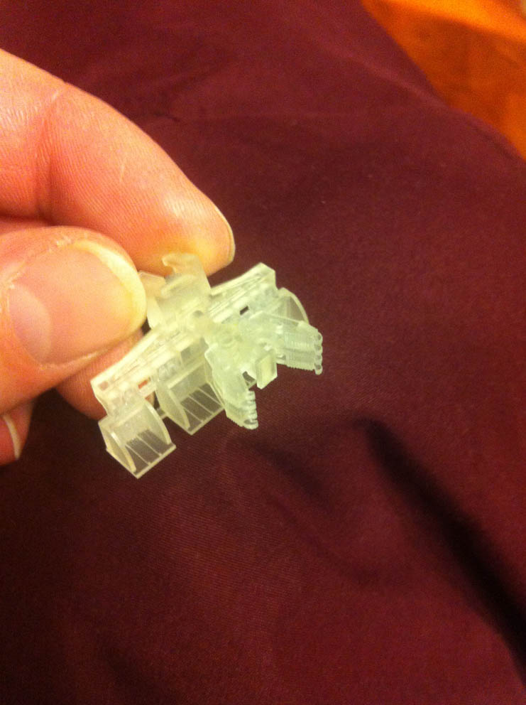 Il faudra dégraisser les pieces pour enlever le produit de traitement qu'utilise shapeways pour la production et qui est très gras. Pour ce faire, il faut simplement nettoyer les pieces a l'eau tiede et du liquide vaiselle, eviter les produits de dégraissage industrielle ou chimique