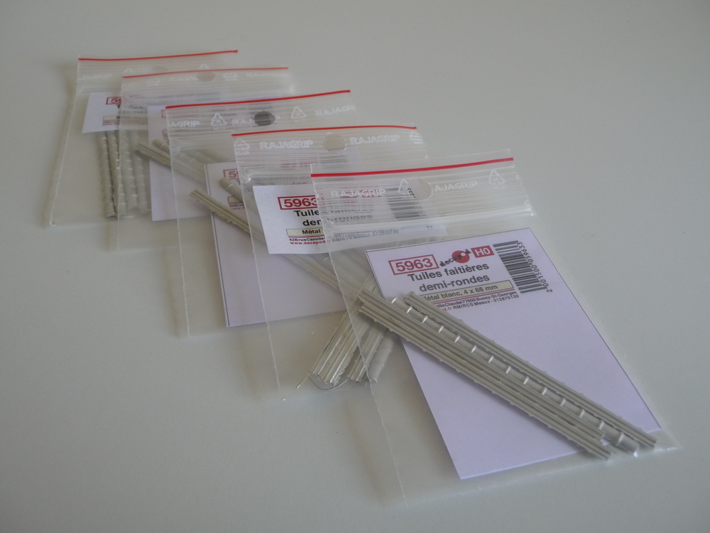 Je me sépare d'un lot neuf de 5 pochettes de de tuiles faitières demi-rondes de chez Décapod, soit plus de 1.30 m au total matériel neuf, prix 21 euros franco, me contacter par MP