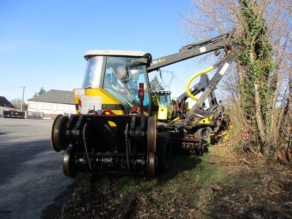 J'ai retrouvé l'UNAC 300 RR - U773 ce samedi 18 janvier 2020 stationné au bord de la RD 1089 (ex RN 89) au lieu-dit "la maison brûlée" sur la commune de Gimel les Cascades en Corrèze. Il s'y trouve en compagnie d'un second engin, l'UNAC 300 RR - U 702. Les travaux sur la ligne de Tulle à Meymac s'effectuent actuellement sur la portion de Tulle à La Gare de Corrèze.