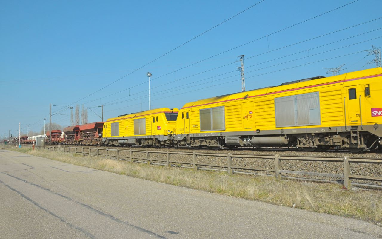 Voici le SNCF 675089 (le 675083 en avant-plan et en arriere-plan une rame des wagons de travaux)
