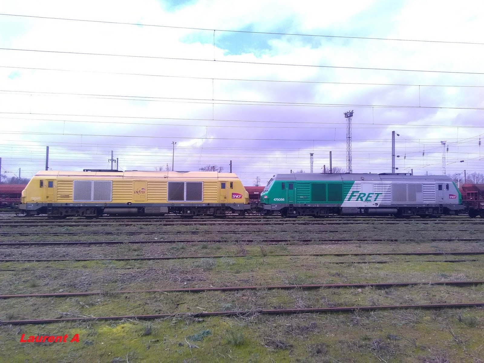 Voici la 75092 en livrée Infra (Mise en service le 16-10-2008) avec la 467472 Infra en livrée Fret pour une sortie de dépôt à 15h30