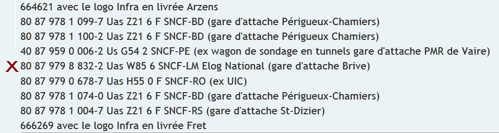 80 87 979 8 832-2 Uas W85 6 F-SNCFR (SNCF RESEAU) ex SNCF-LM Elog National gare d'attache Brive