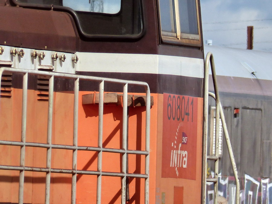 Locotracteur Y 608041 avec logo Infra sur la rame Désherbeur à SPDC le 17-03-2019