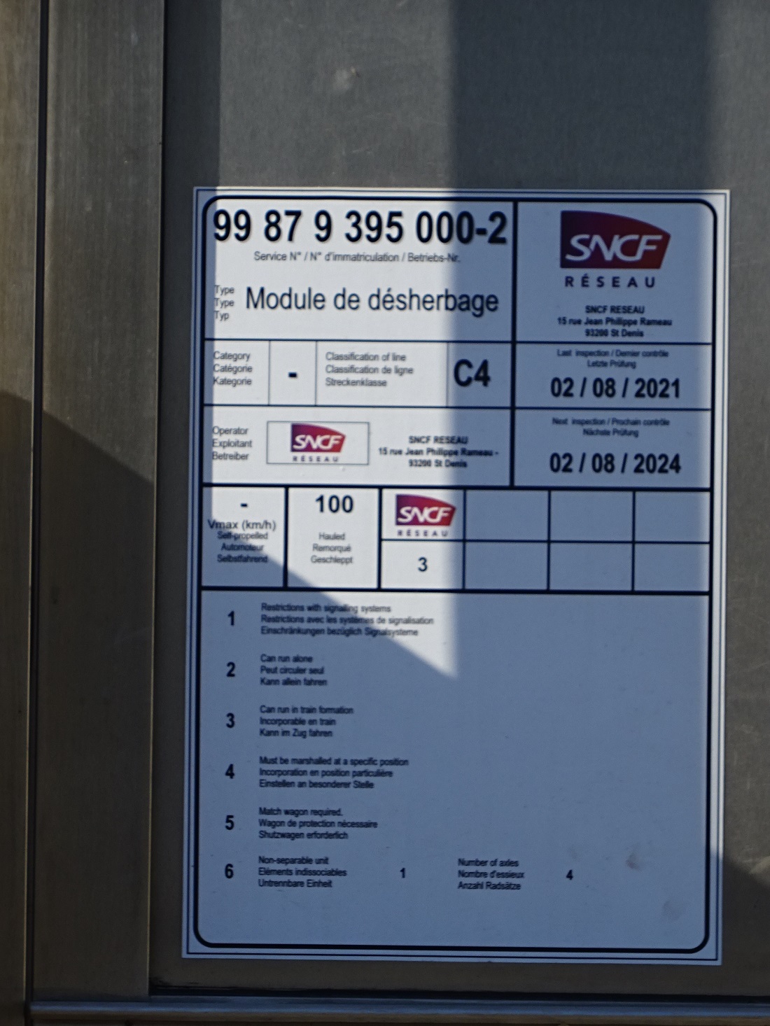 Il resterait 5 trains nationaux, celui ci le TDGR 21-1 utilise un nouveau wagon équipé en module de désherbage 99 87 9 395 000-2 (système RECOSPRAY).