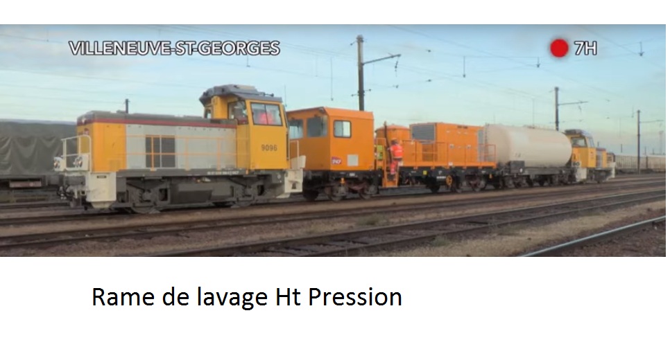 La rame complète se comporte ( suivant les films sur Youtube ) un tracteur diesel (63000 ou équivalent) Le wagon laveur un wagon plat avec des citernes et un autre Diesel
