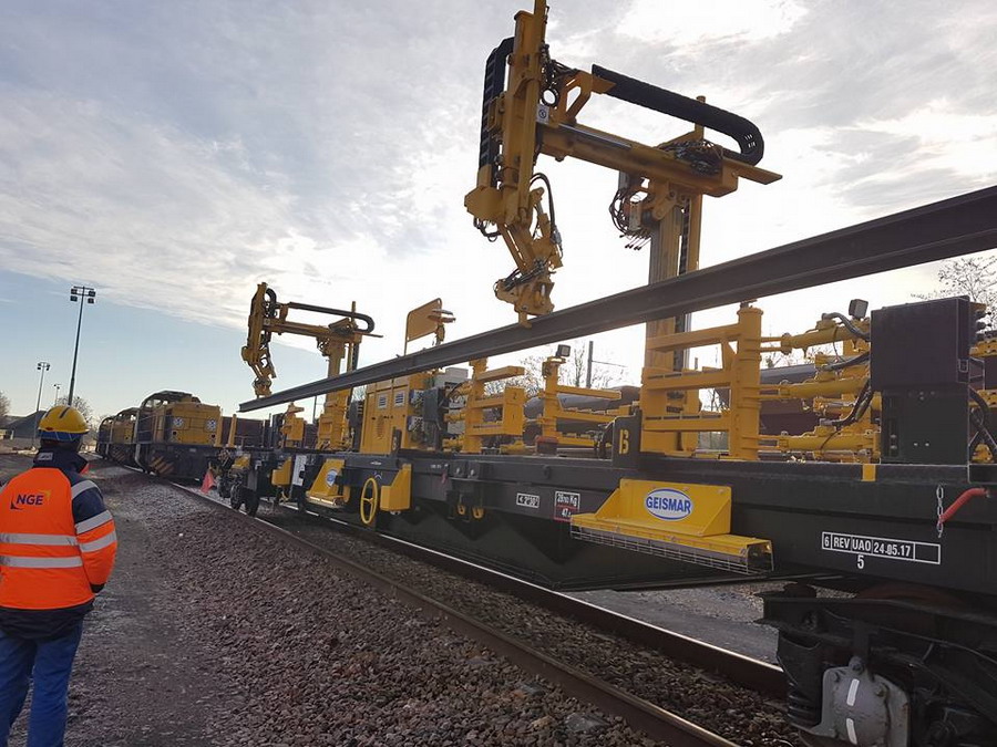 Voici un nouveau wagon de déchargement et de chargement de rails pour TSO en démonstration le 13 décembre 2017