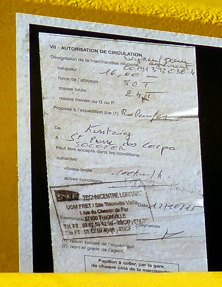 Je commence par le 00 191 312 036-4 Rolanfer n°599144 Socofer de SPDC (37) le 30-10-2015