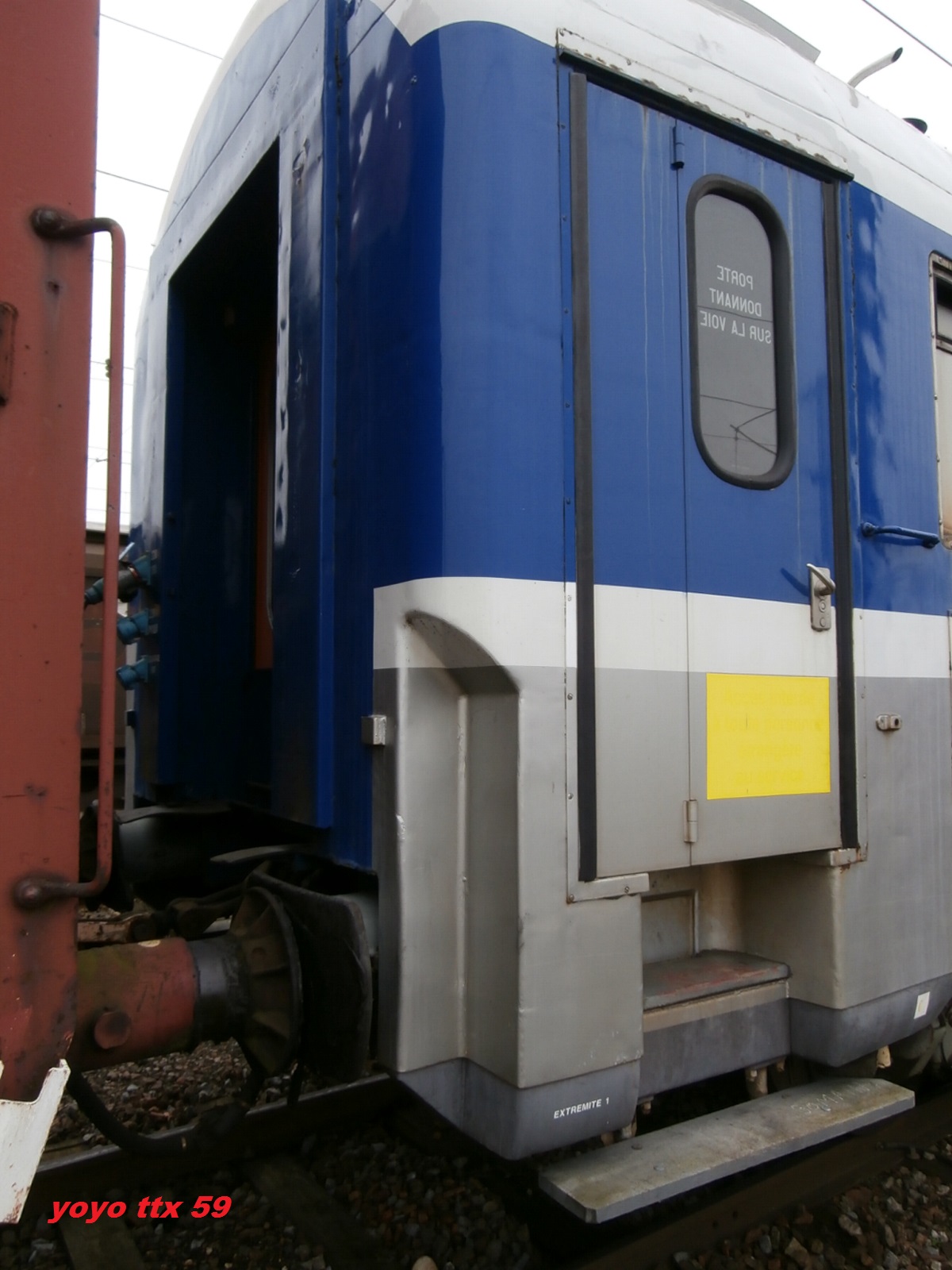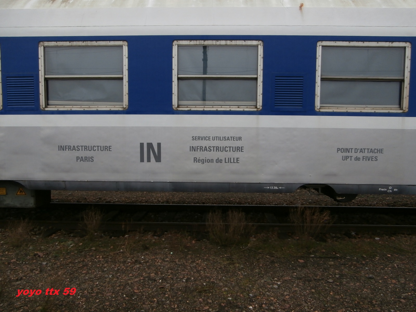 A noter que cette voiture accompagne le wagon de secours de la région de Lille " Uass - H52-6 - 80 87 979 1 547-3 - SNCF - LL " .