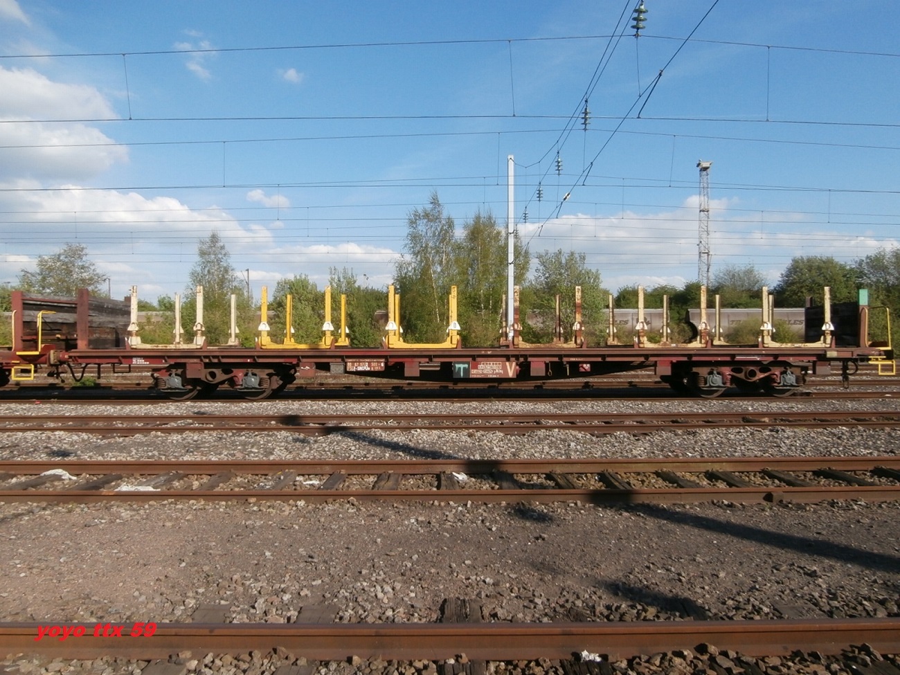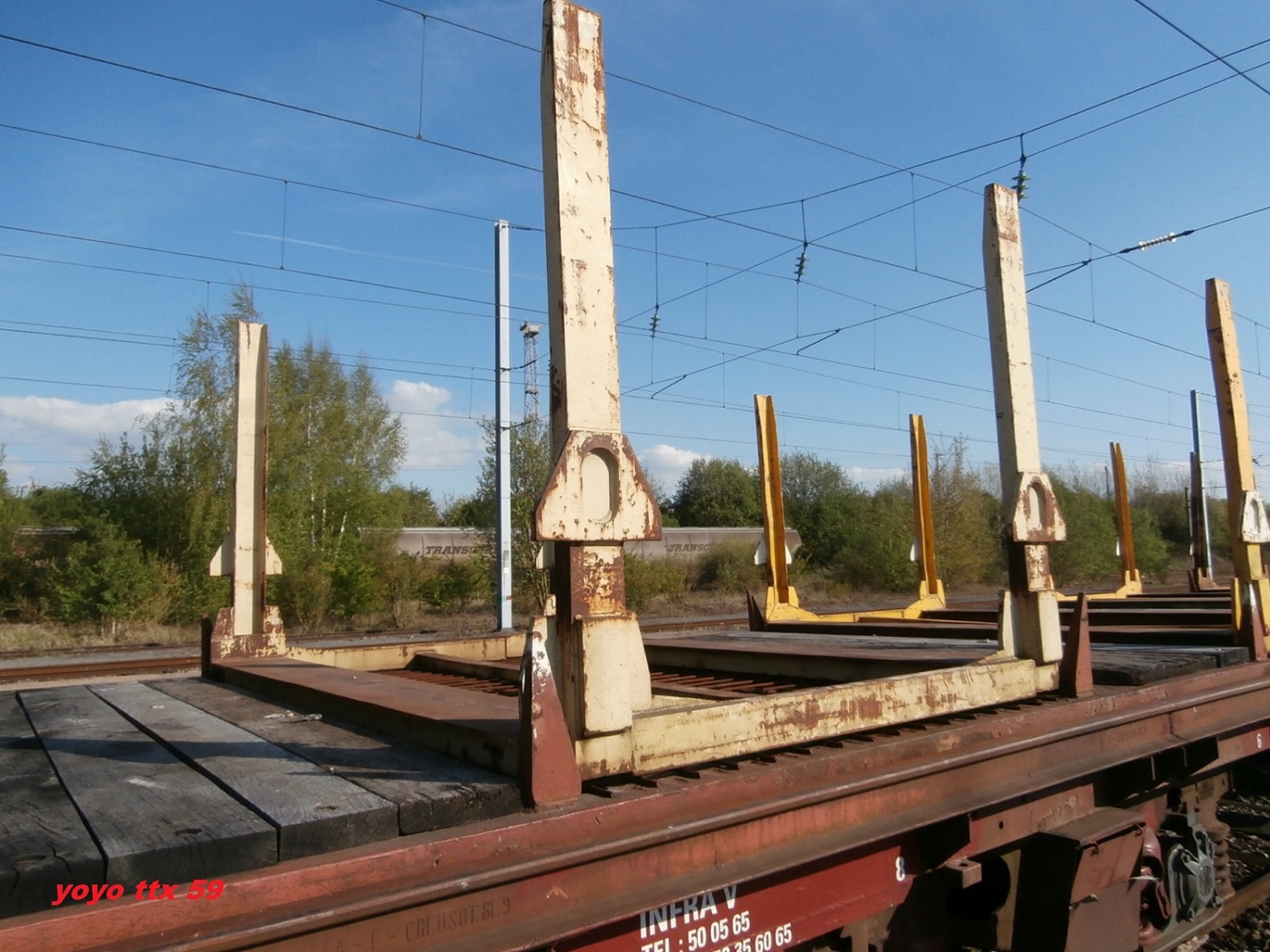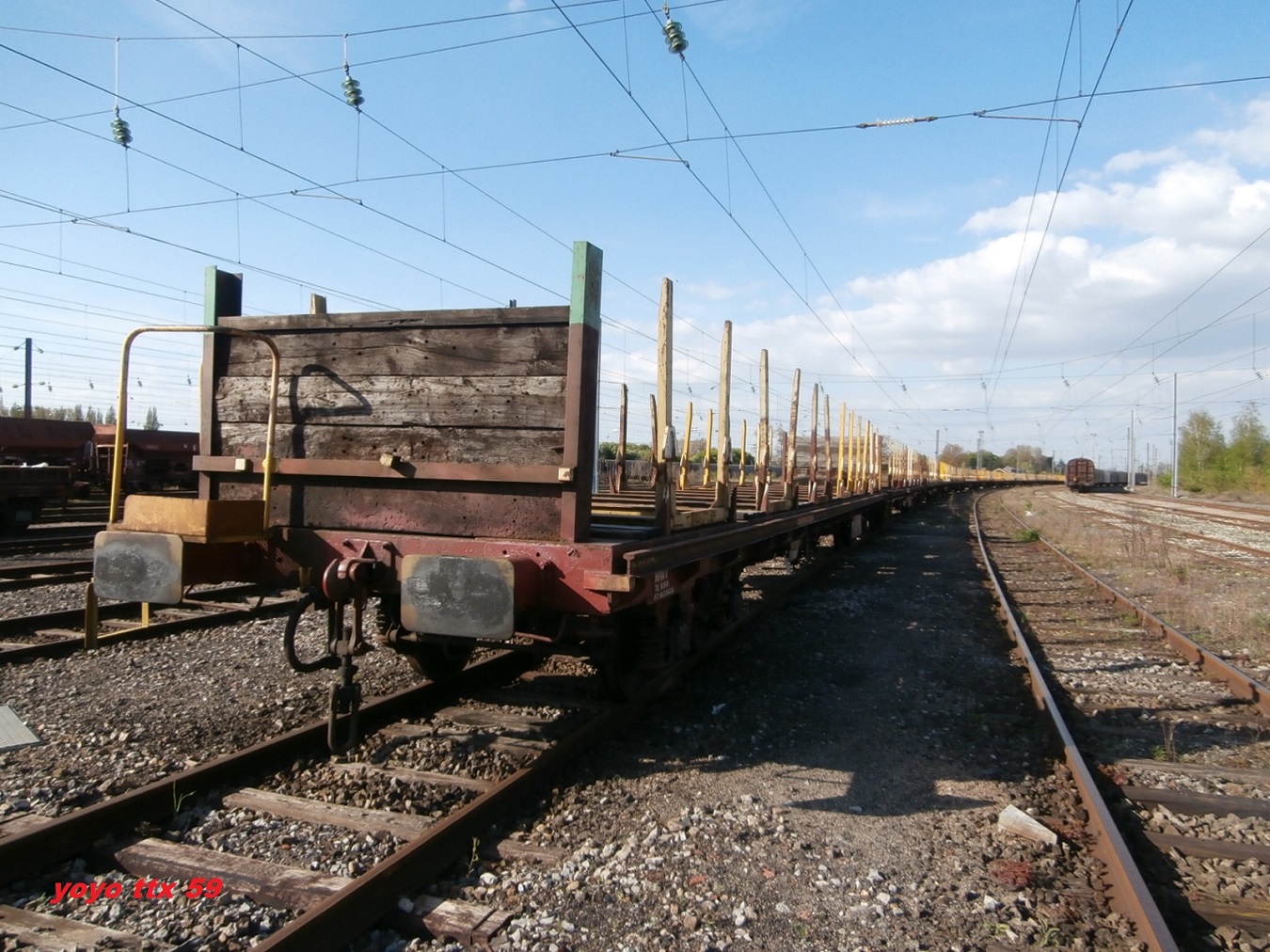 Voici le wagon 80 87 972 2 500-6 Ua R09 5 F SNCF-PSL avec un chargement de traverses