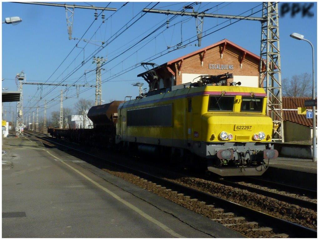 Voici la 622297 Infra en livrée jaune avec la 667627 Infra aussi en livrée jaune à la sortie Ouest de Saint Pierre des Corps