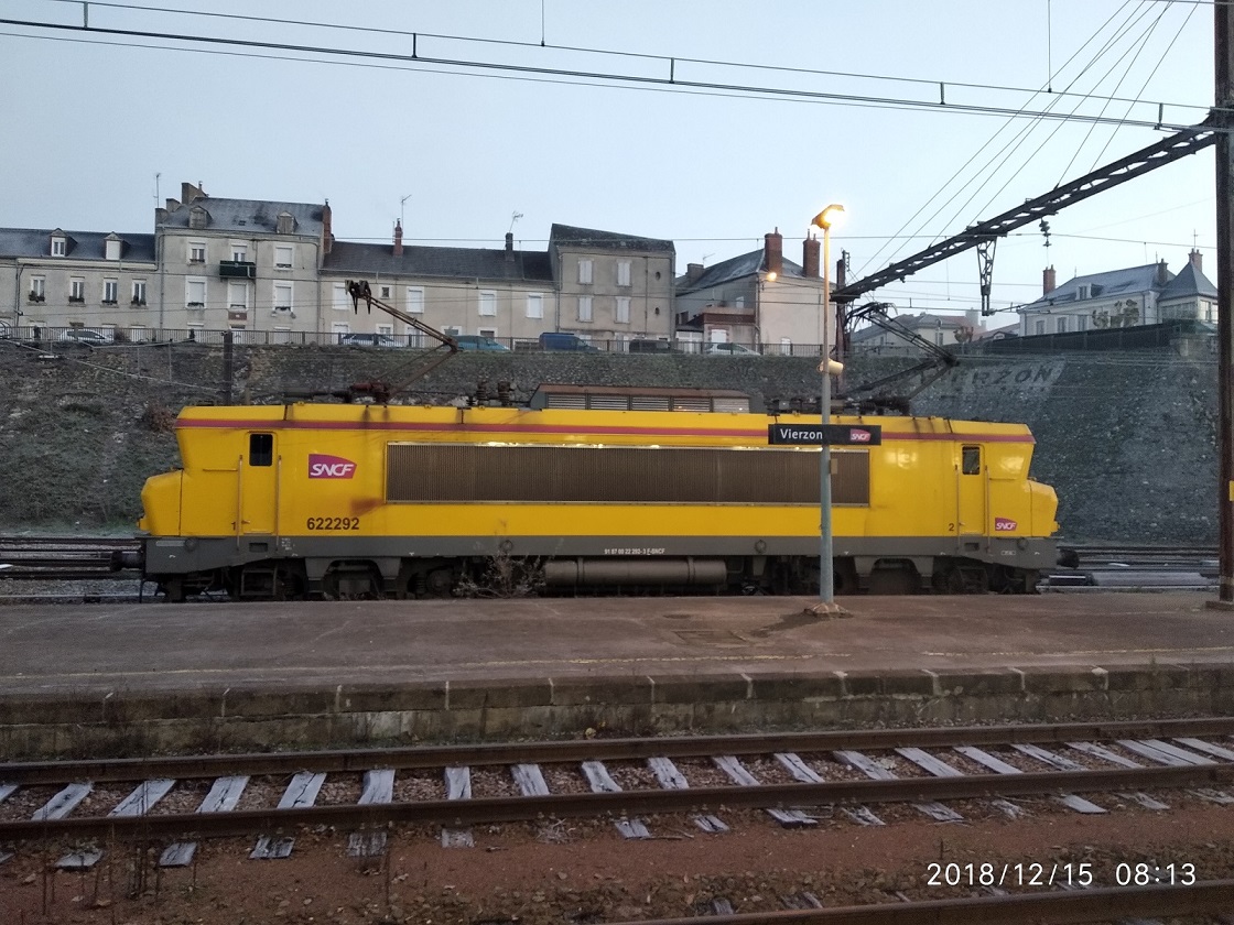 Voici la machine qui arrive à 15h38 de Bordeaux avec la 63979 Infra en livrée Arzens équipée du système de refoulement