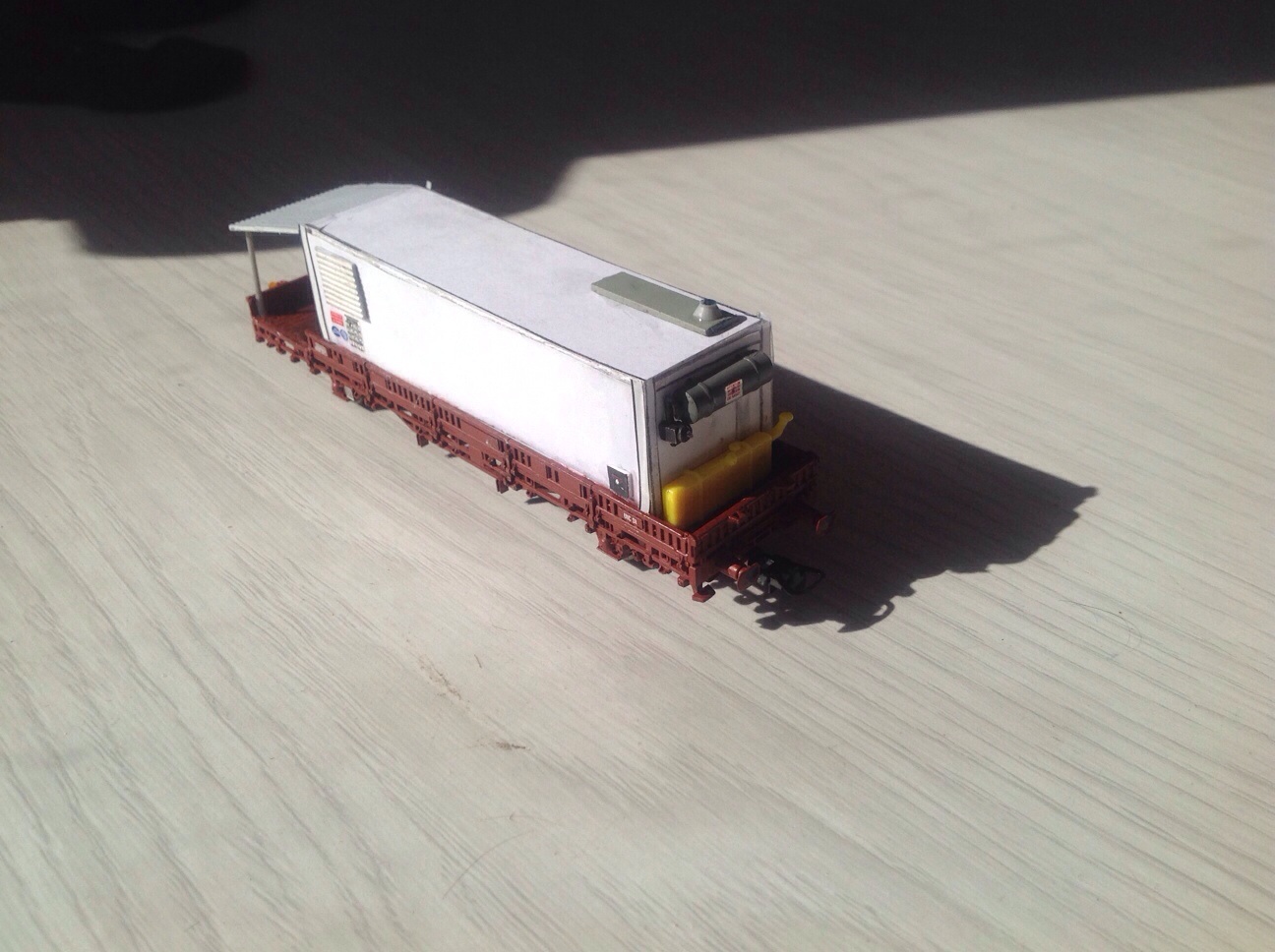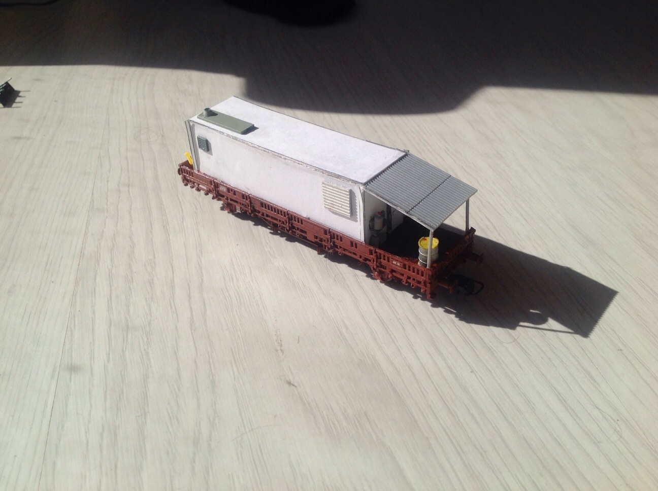 Voici une de mes dernière réalisation un wagon porte bungalow SNCF